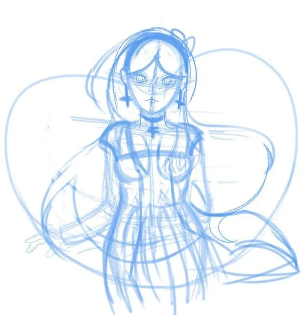 Para entender el programa debidamente, hice un dibujo nuevo, desde cero. Usé como base un bosquejo que había dejado de lado de una de mis comisiones fallidas; si, es el otro que hace juego con el de la chica Punk-Kawaii. A la gente por algún motivo les gustó mucho estas piezas, así que le di otra oportunidad.