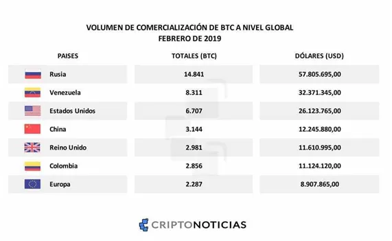 El caso de Venezuela es paradigmático. Entre Venezuela y Colombia comerciaron 11.208 BTC a través de LocalBitcoins durante el mes de enero de 2019, concentrando más del 80% del volumen de intercambio en la región. Venezuela comerció en las últimas semanas 8.319 bitcoins, 1,64% más que el mes anterior, cuando alcanzó el hito de los 8.182 BTC en el mes.