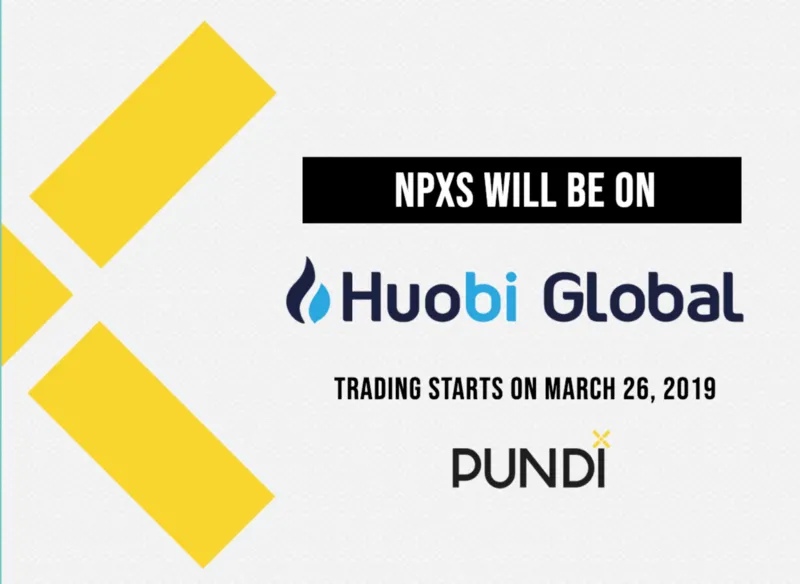 NPXS ya está disponible en Huobi Global a partir de las 14:30 GMT + 8 el 25 de marzo de 2019 para depósito. Las operaciones comenzarán a las 10:30 GMT + 8 el 26 de marzo de 2019. El par comercial es NPXS / BTC y NPXS / ETH.