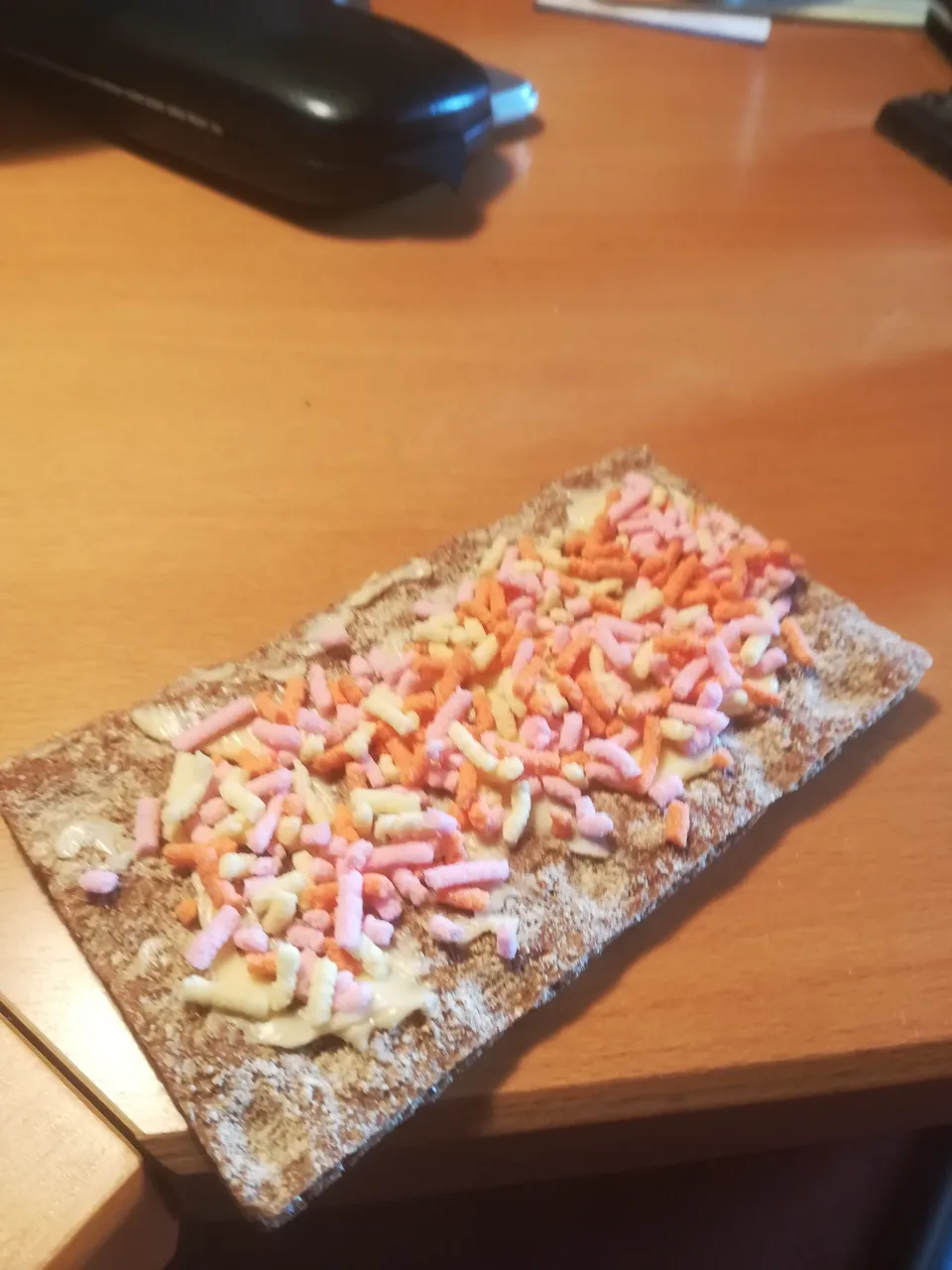 And here is my bite. A nice piece of KNÄCKEBRÖD from Sweden with a Dutch sugar fantasy cover.