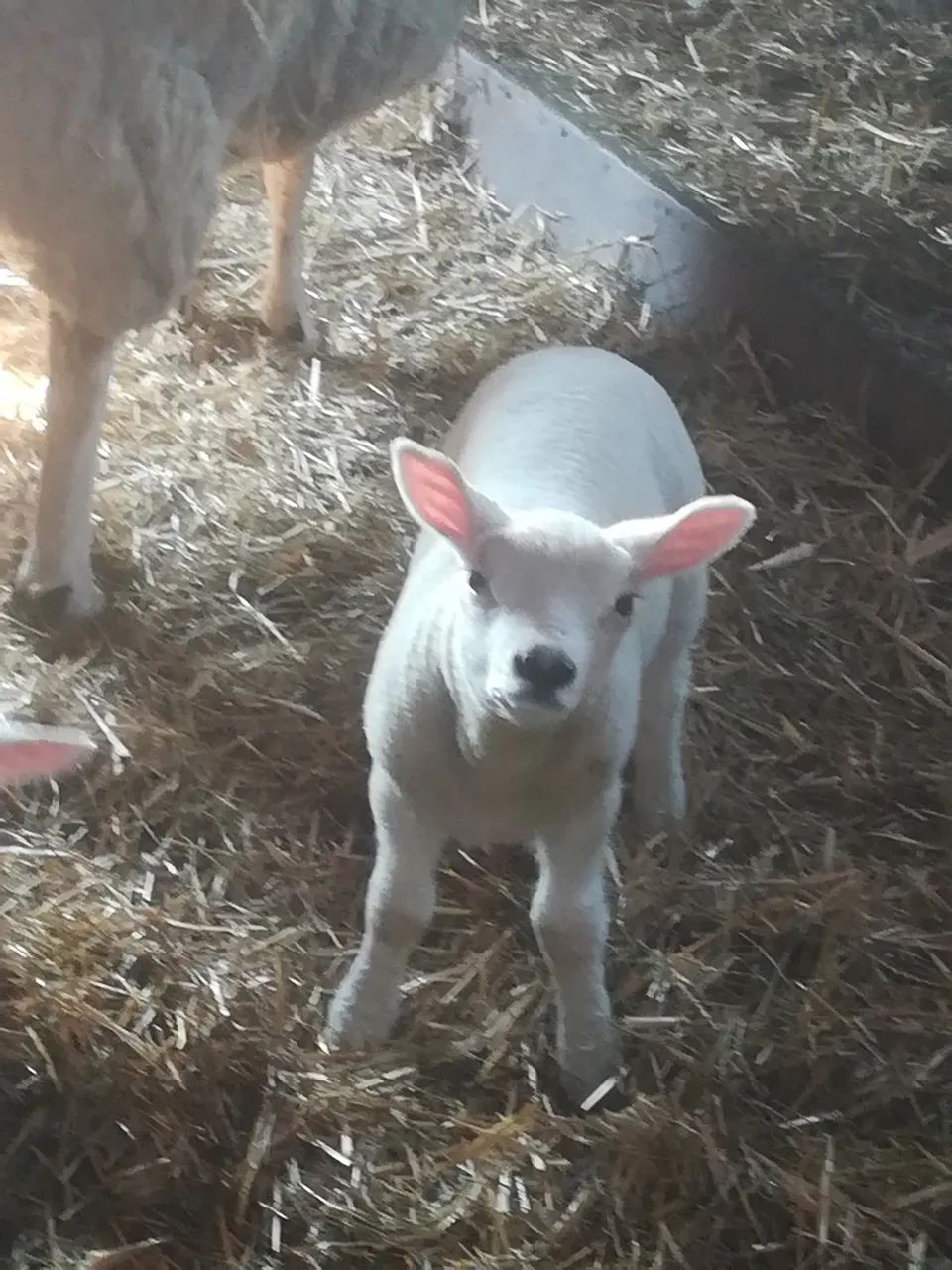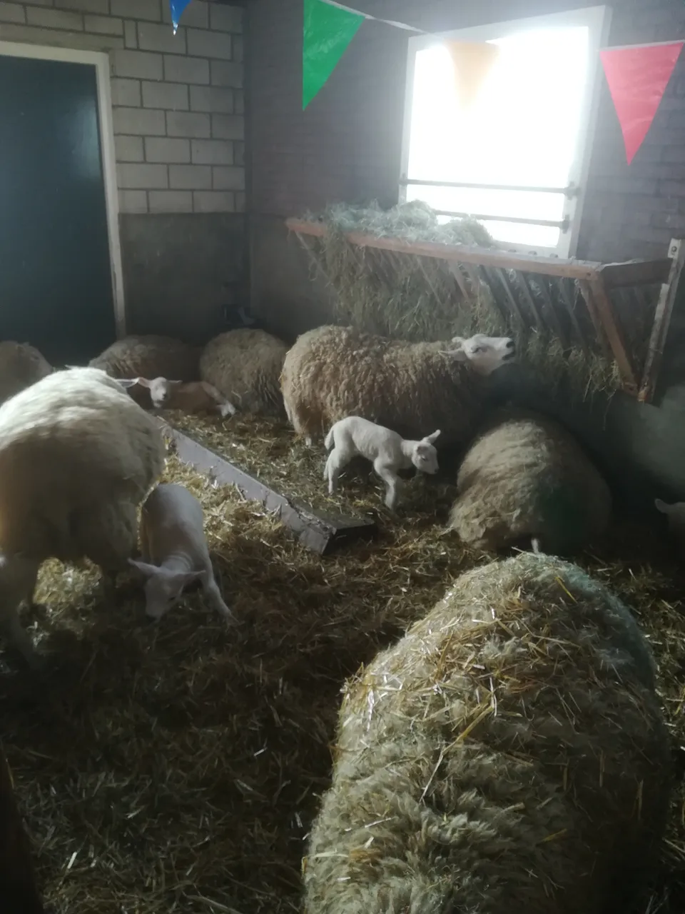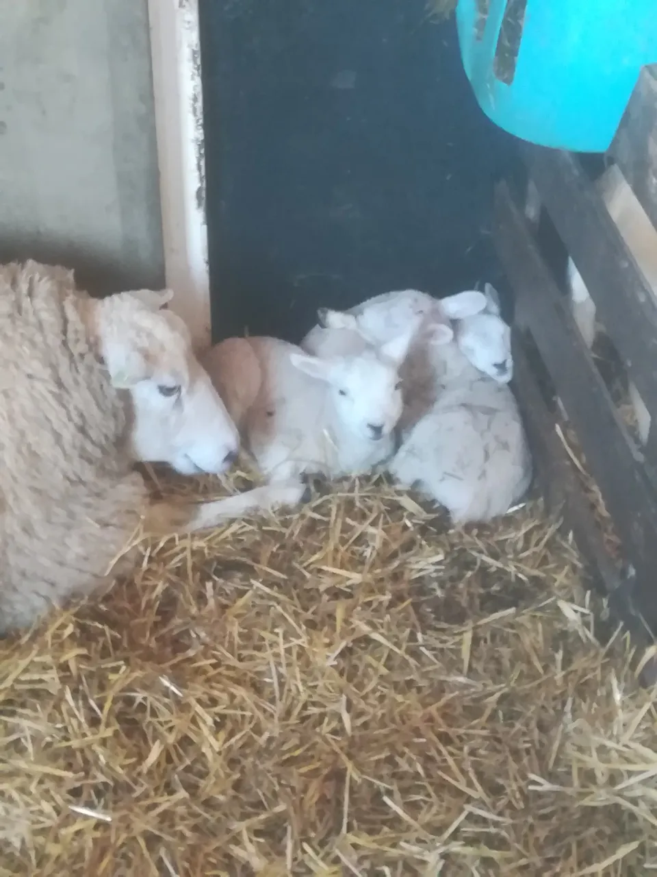 The farmer told us the first seven births were singles which is not good. However also a triplet was born. Further more they lost one mother during or short after givin birth. The farm is a (typical) dairy farm with over 100 milkcows, 40-50 young cows (pinken 1-2 yr olds) no milk robot, and some twenty sheep.
