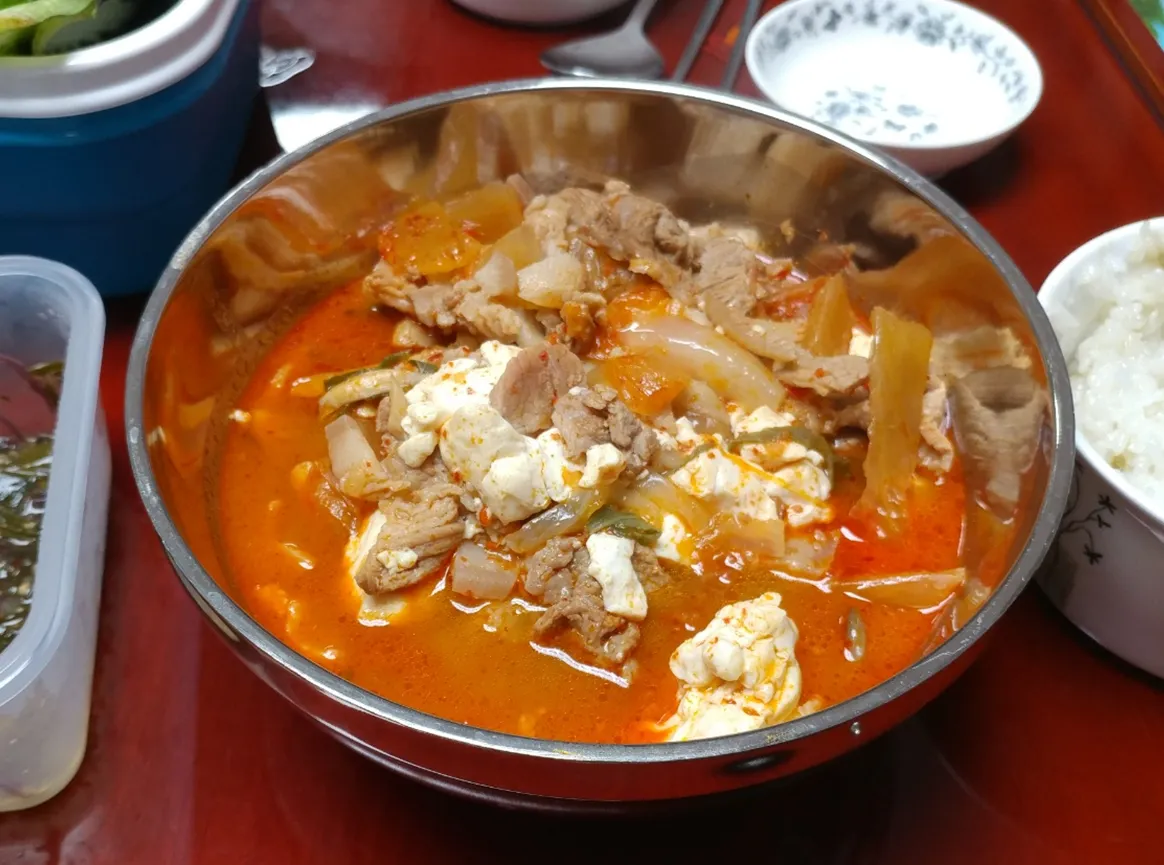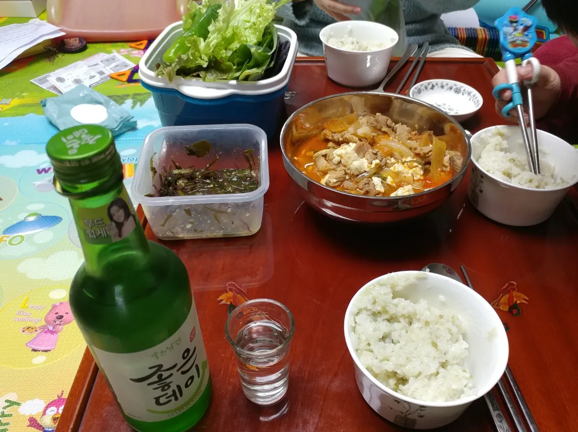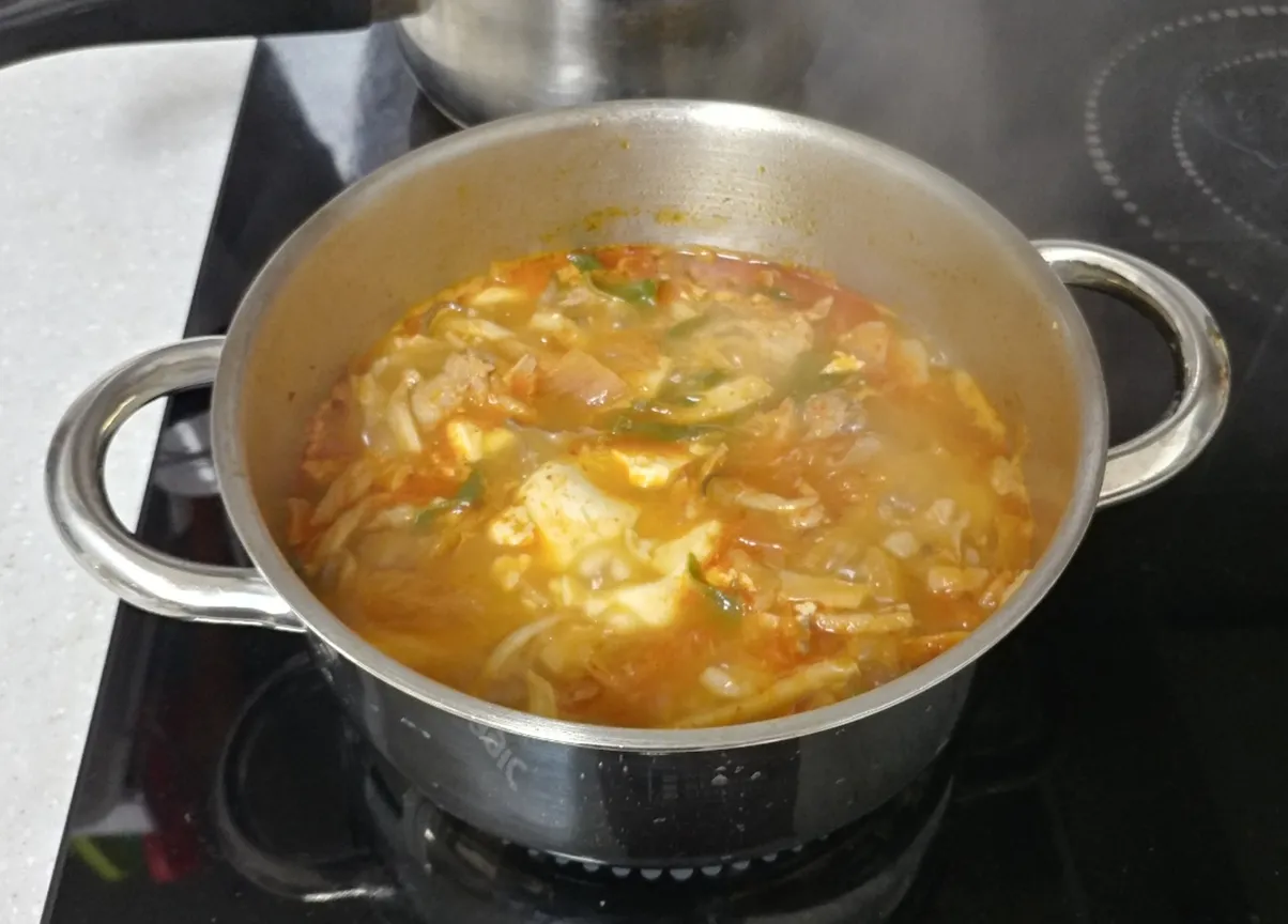 집에 도착했더니 와이프님께서 자글자글 순두부 김치 돼지찌개를 만들고 계시더라구요.