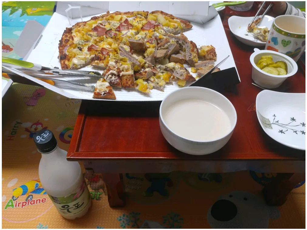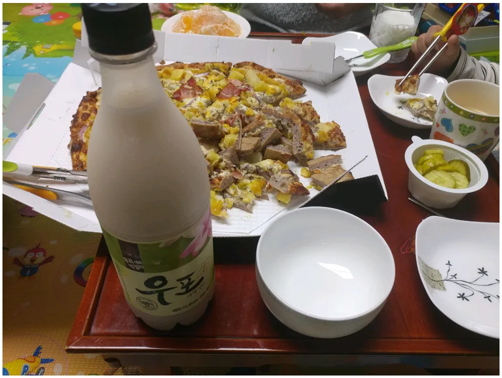 어젠 그렇게 피자에 막걸리로 저녁을 떼우고~