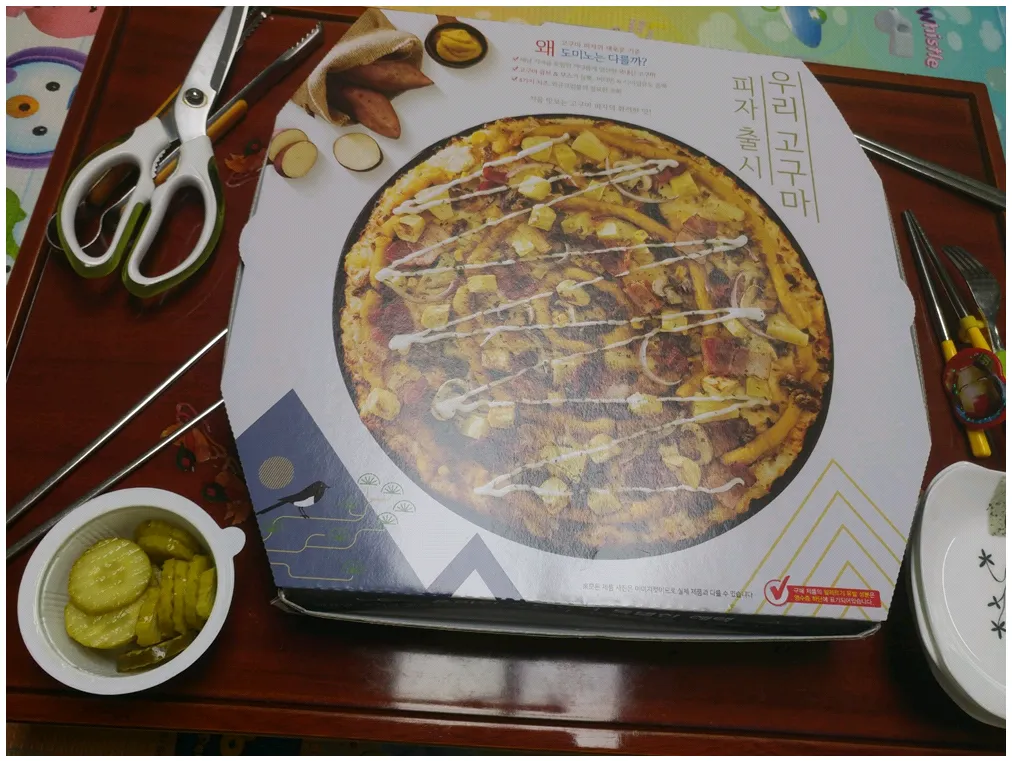 어제 아들님이 고르신 피자는 우리 고구마 피자!!!