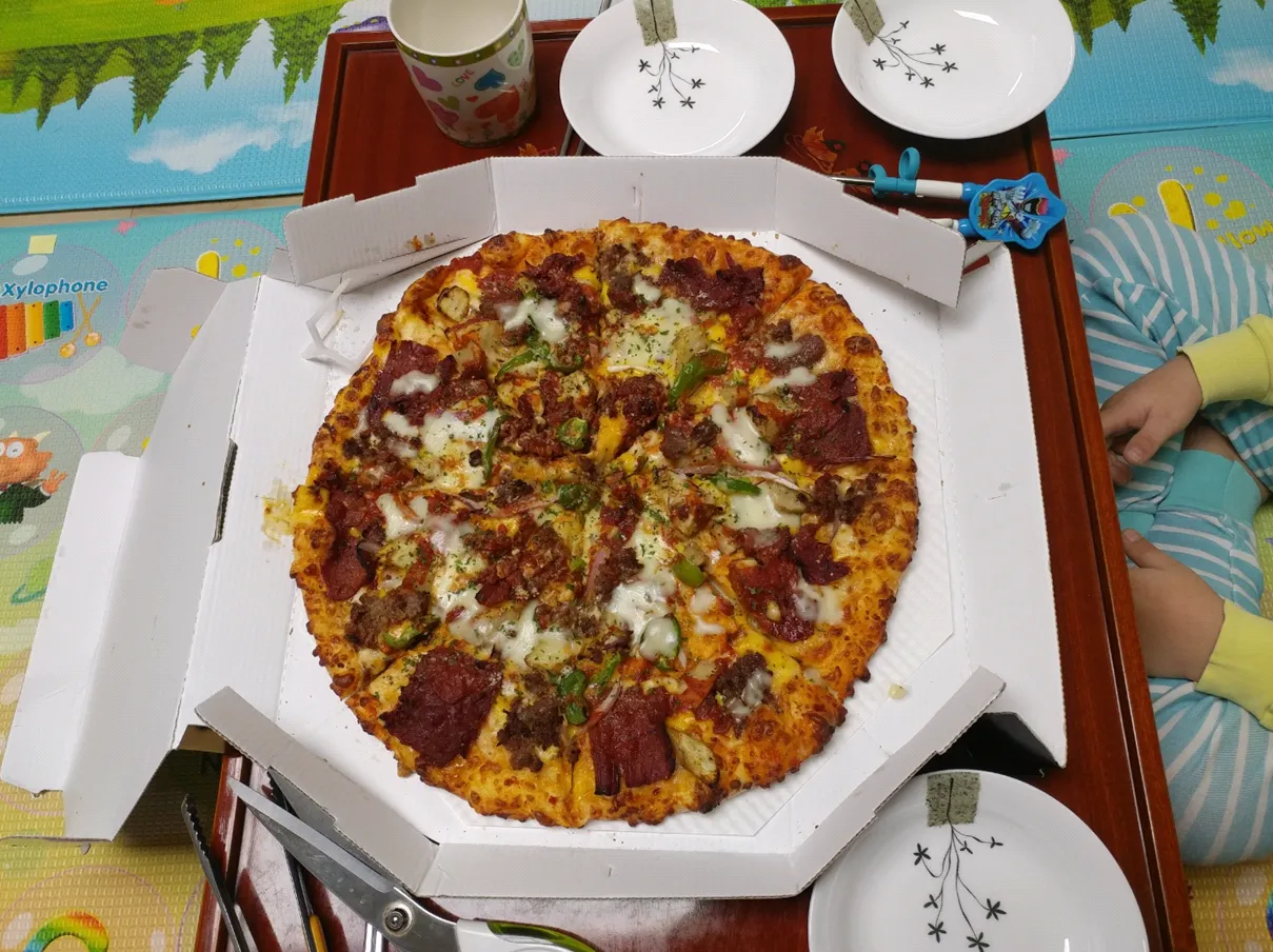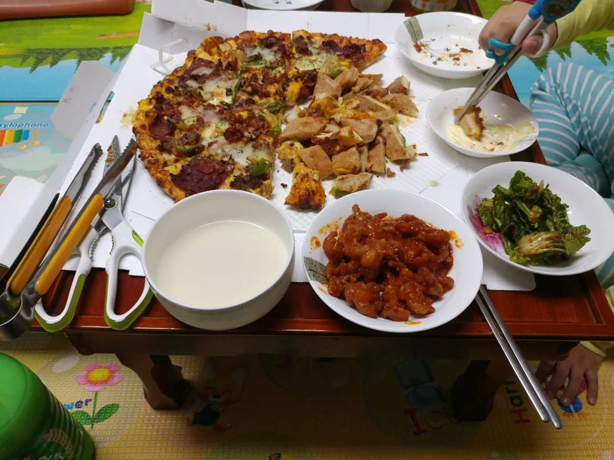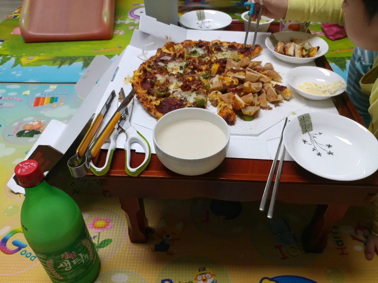 그러질 못하고 저녁 차리기도 힘들고 해서 그냥 피자를 시켜 먹었답니다.