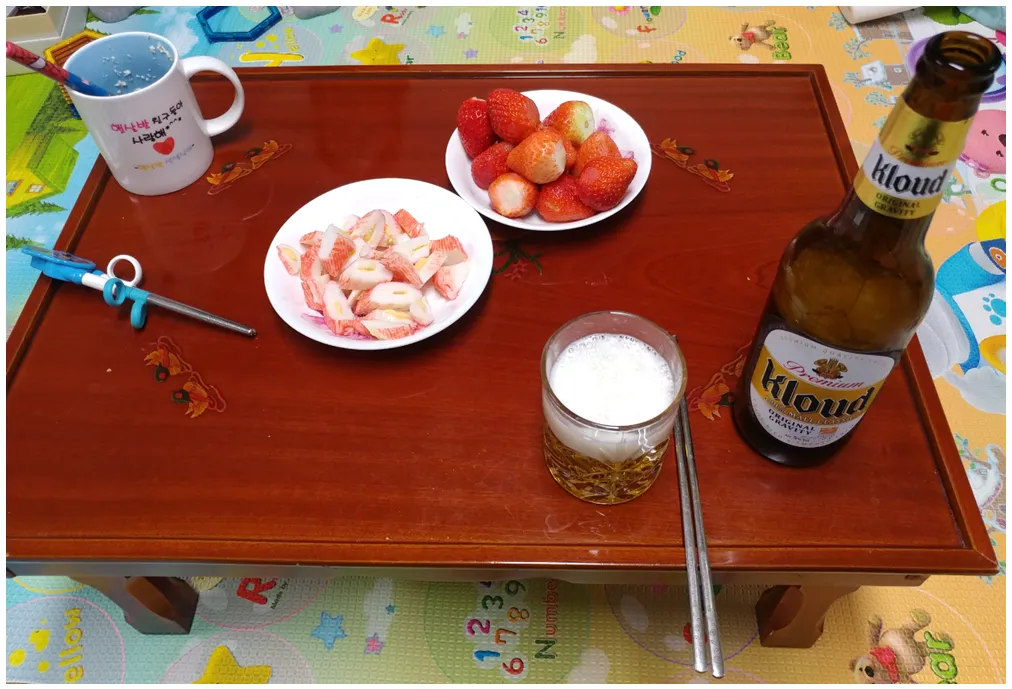 어제도 먹었던 치즈 크래미와 맛있는 딸기에 맥주!!