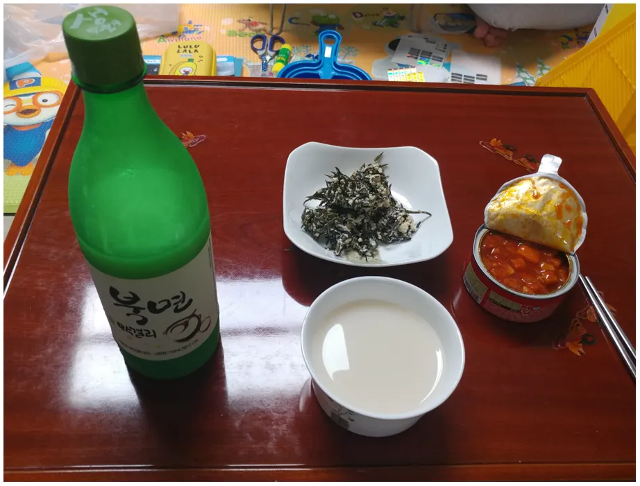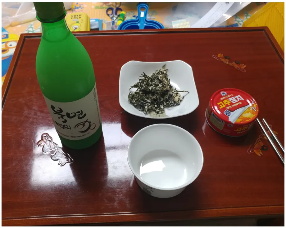 와이프님이 만들어 주신 톳무침과 고추 참치!!! 그리고 북면 막걸리!!