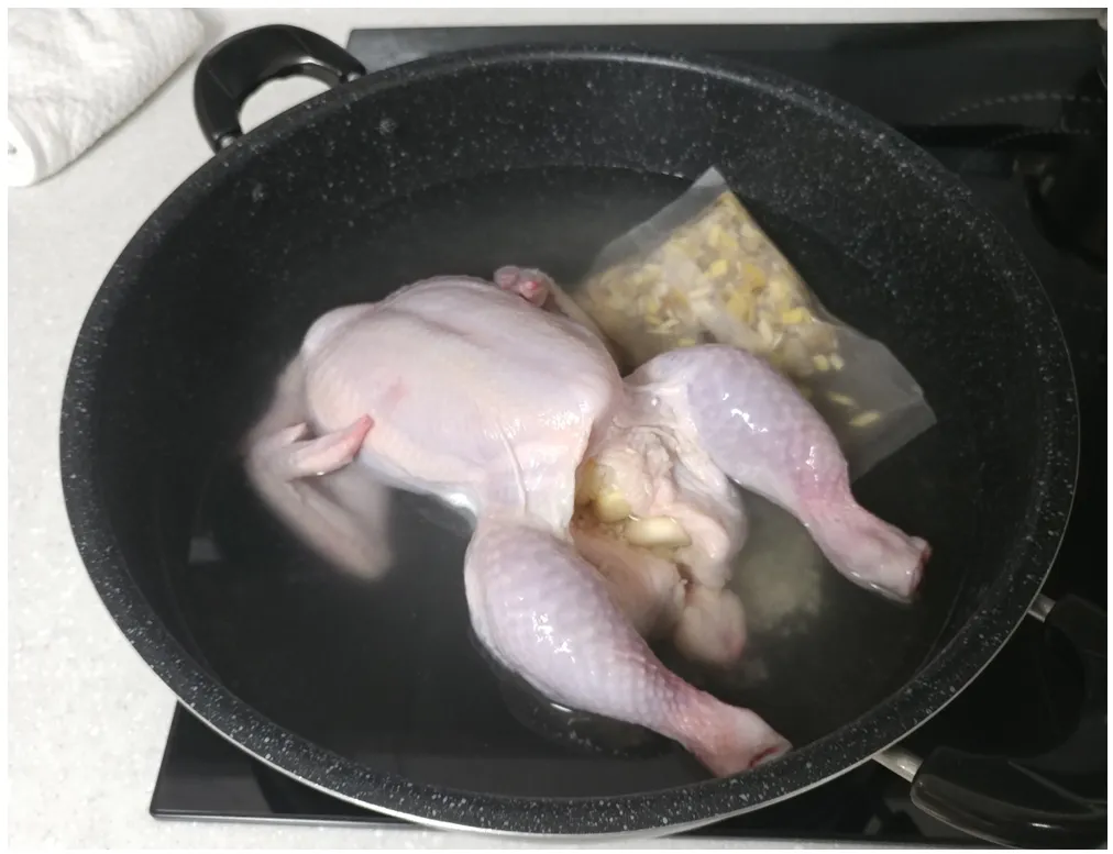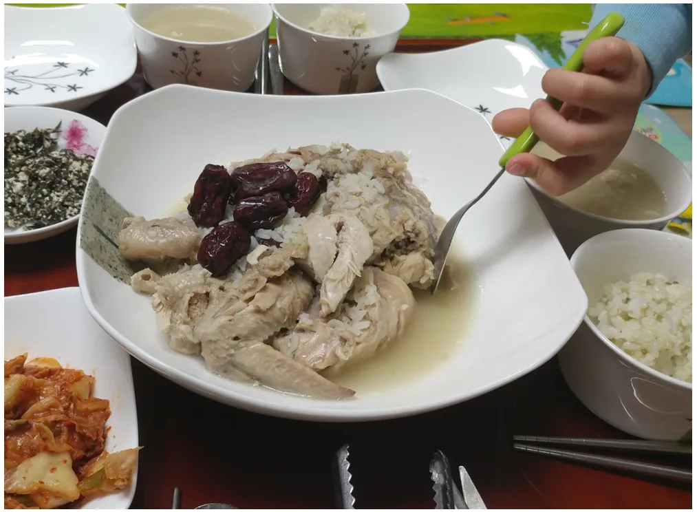 닭 배속에 찹쌀을 넣어야 하는데 하필 찹쌀이 떨어져서 그냥 쌀과 마늘을 가득 채우고 백숙용 모듬 약재를 넣고 푹 끓이면 끝!!