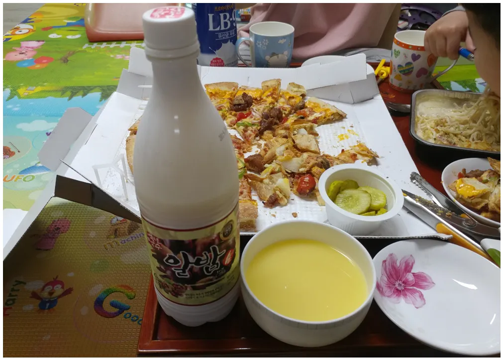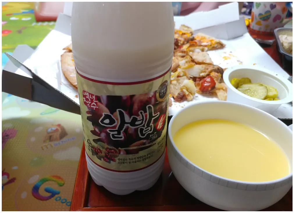 피자와 함께 준비한 알코올은 알밤 막걸리!!