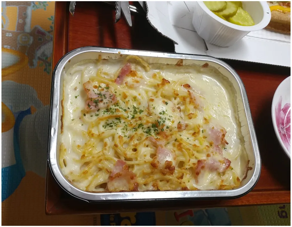 그리고 아들님이 드시고 싶다고 하신 크림 스파게티도 시켰네요.