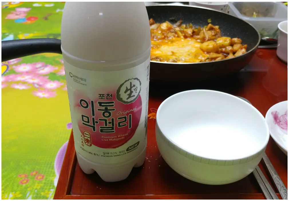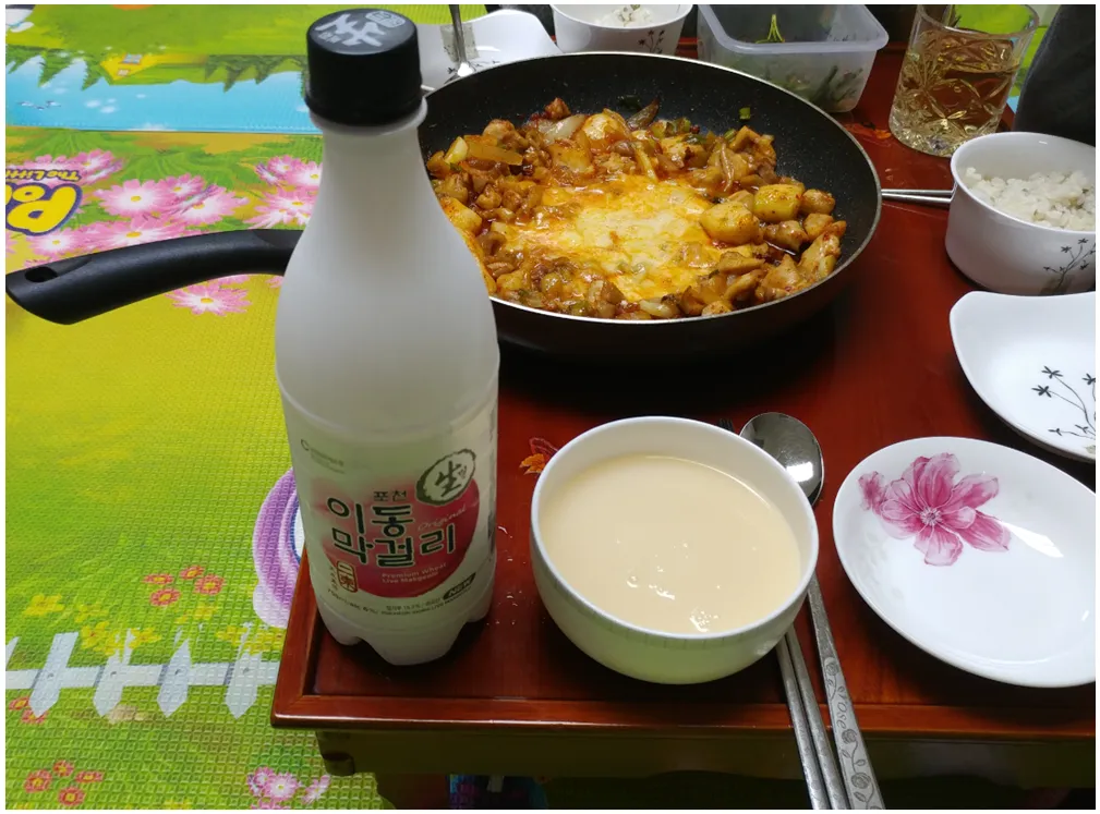그렇게 처음(?) 접해보는 밀 막걸리와 함께 치즈 닭갈비를 너무나도 맛있게 먹다가...