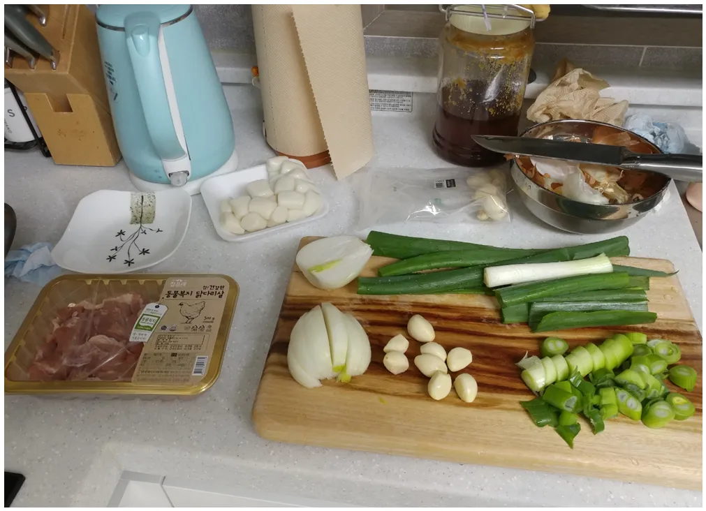 간단하게 닭갈비와 떡, 파, 양파, 마늘 손질!!