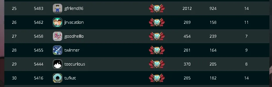 연승을 몇번했더니 순식간에 5498점으로 25위 안에 들었었는데요.