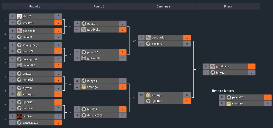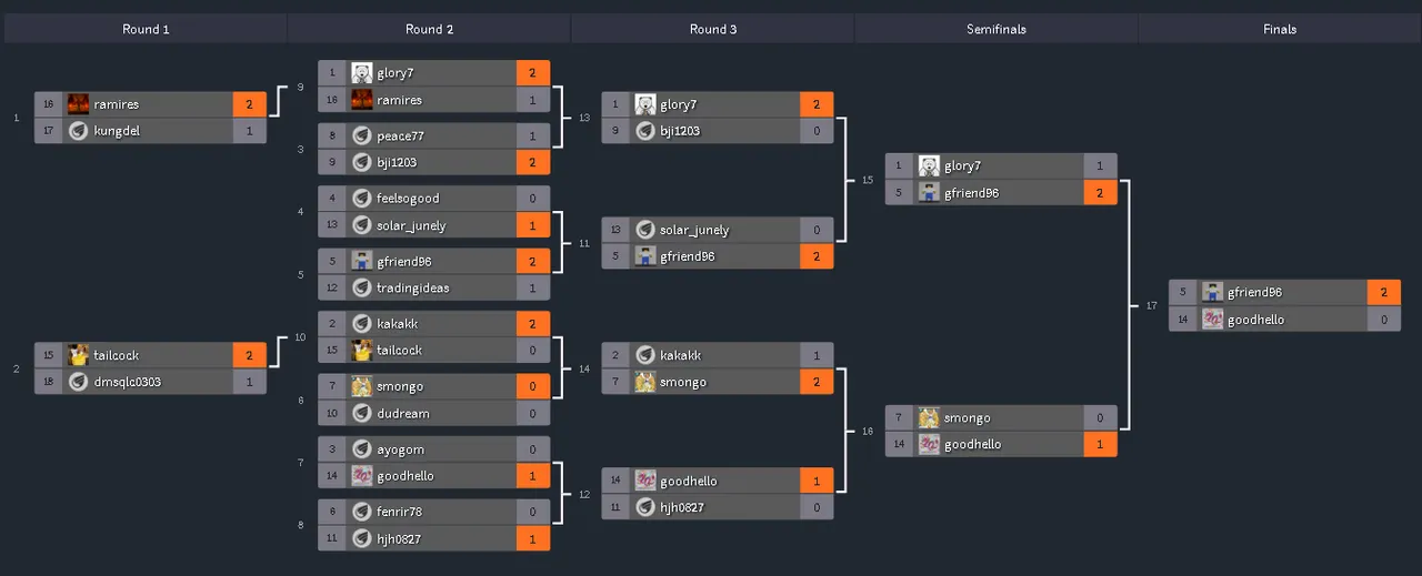 상금 후원 해주신 압둘라 @abdullar 님과 토너먼트 진행해주신 @glory7 님 정말 감사드립니다~