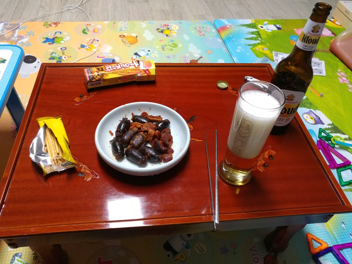 아까 먹다 남은 순대 막창구이 데워서 구운감자와 맥주 한잔 하고 있답니다...