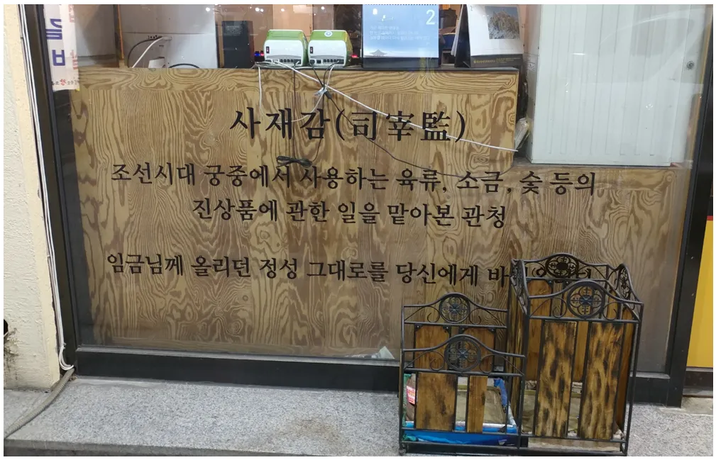 사재감이란 조선시대 궁중에서 사용하는 육류, 소금, 숯 등의 진상품에 관한 일을 맡아본 관청이라는군요.
