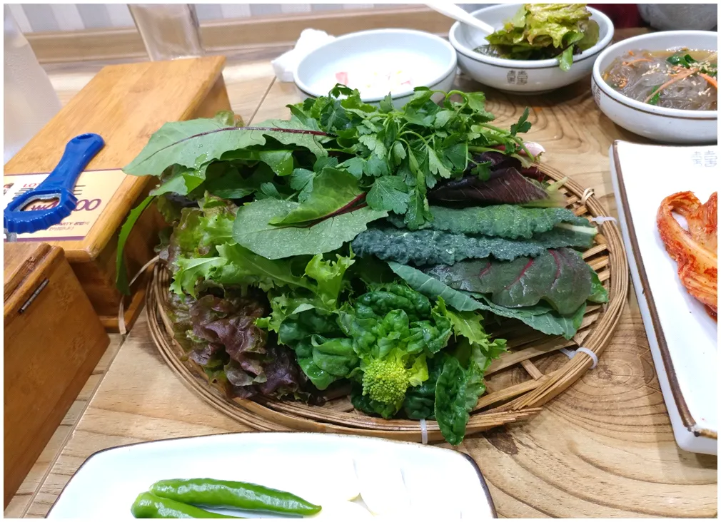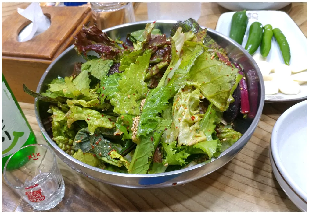 그리고 보기만 해도 건강이 넘쳐보이는 신선한 쌈야채들이 나오는데...