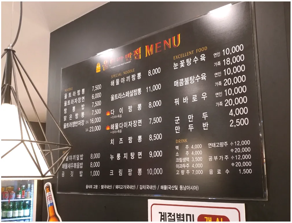 저희는 자장면을 먹으로 울트라반점을 방문하였습니다.