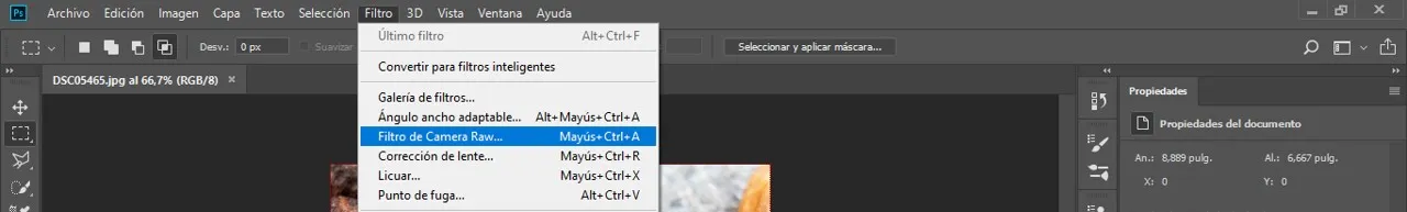 Para ello, hice uso de la opción Filtro de Camera Raw en Adobe Photoshop cc 2018.