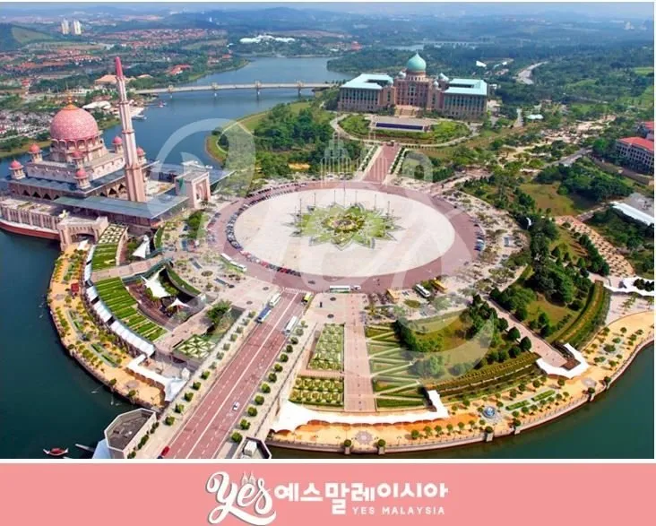 먼저 푸트라자야에 있는 핑크모스크로 출발합니다. 푸르라자야는 우리나라 행정도시를 만들때 참고한 곳 이라고 합니다. 쿠알라룸프에서는 조금 떨어진 지역에 위치해 있고, 행정수도의 기능을 한다고 합니다. 계획도시로 만들어진곳이라 도로도 넓고 깨끗하고 말레이시아 초대 총리를 지냈던 툰쿠 압둘 라만 푸트라의 이름에서 도시명이 유래됐다고 합니다. 항공사진이 보기도 편하고 멋있어서 예스말레시아에서 퍼왔습니다. 혹시 몰라서 로고도 함께요~ 제가 찍은 사진이 아니니~ ^^(홍보는 절대 아닙니다요)