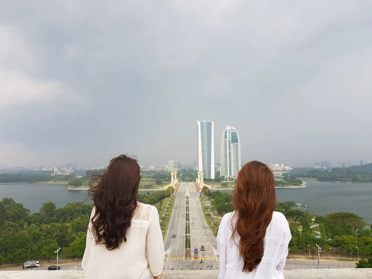 그리고 바람이 마구 불기 시작하는 시점에 도착한곳은 푸트라자야 시내전경을 볼수있는 PLCC (Putrajaya International Convention Center) 입니다. 다행히 비가 아직 안 내린다며 가이드가 서둘러서 빨리 사진 포인트에 세웁니다. 바람때문에 머리가 얼굴을 마구 때리는 중이었지만 뒷모습이 잘 나와줘서 동생이랑 만족 하기로 했습니다. 누가 비를 불러오는건지;;;;