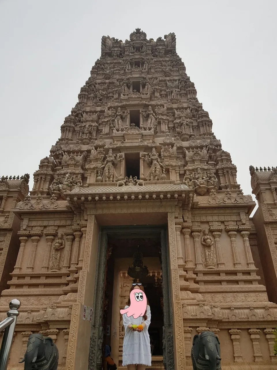 사티신이 남편의 명예를 회복시키기 위해 신들의 모임에서 불에 몸을 던졌는데 이 설화로 인해 사티교에서는 남편이 죽으면 아내도 따라 죽어야했다는 풍습이 있었다고 합니다. 그래서 이 사원 자체가 없어질 뻔 했는데 다행히 풍습이 없어지면서 살아남았다는 이야기도 전해진다고 가이드가 얘기해주더라구요~ 사원안에서는 사진을 찍지 못하고 밖에서만 찍을수 있었습니다. 물론 사원을 좋아하는 저희가 신발을 벗고 1번으로 들어가서 제일 나중에 나오기!! 어딜가나 이어지는 문지기들의 동생에 대한 관심 ㅋ 동생은 다 주는줄 알고 받은 망고와 오렌지... 그리고 이마에 빨간 점도 받고 신나게 나오네요~ 두손 모아 기도한 저에게는 바나나줘서 괜찮타고 했고 했건만;;; 나오고보니 과일은 우리만 받아나왔더라구요~ 동생 또 신났네요~ 가이드님 놀라주시고;;; 어디서 가지고 나왔냐며;;; 가지고 나온거 아니고 받아나온 건데;;;