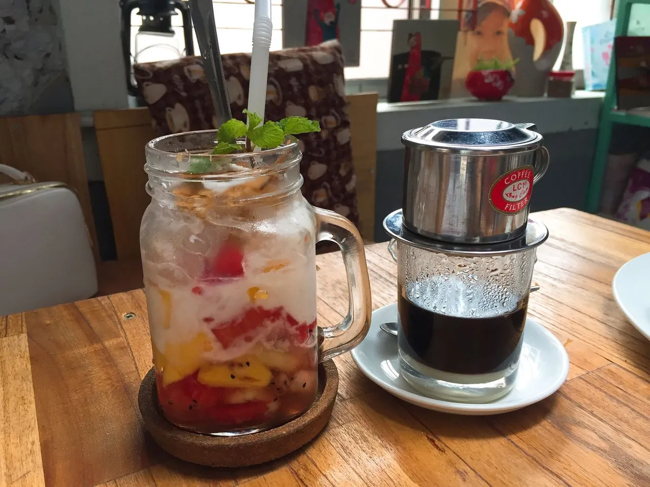 먼저 커피 한잔 시켜봅니다. 베트남식 드립커피~ ^^( 여기서 커피를 둘이 3잔이나 마셨네요~ ㅋ) 저 쇠로된 드립퍼를 살까말까, 커피도 같이 살까말까 망설이다가 짐될까봐 패스 합니다. 잘 쓰지도 않을꺼면서 보면 사고 싶고;;;