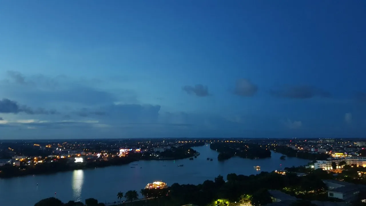 선셋을 보기위해 Imperial Hotel로 갔습니다. 숙박하지 않아도 루프탑에 당연히 갈 수 있습니다^^ 가는날이 장날이라고 결혼식인지 파티인지 호텔에 사람 엄청 많길래 긴장하고 루프탑으로 갔는데 왠일~ 여기는 진짜 들어갈때부터 나올때까지 저희 뿐입니다. 호텔바 완전 전세낸 듯요!! ㅋ 아직 해지기 전이라 일단 더위도 식힐겸 실내에 앉아서 주문했습니다. 실내 창으로 보이는 배경인데 그냥 그림 약자 같습니다 ^^ - 루프탑바의 이름은 King's Panorama Bar, Imperial Hotel 16층에 있습니다.