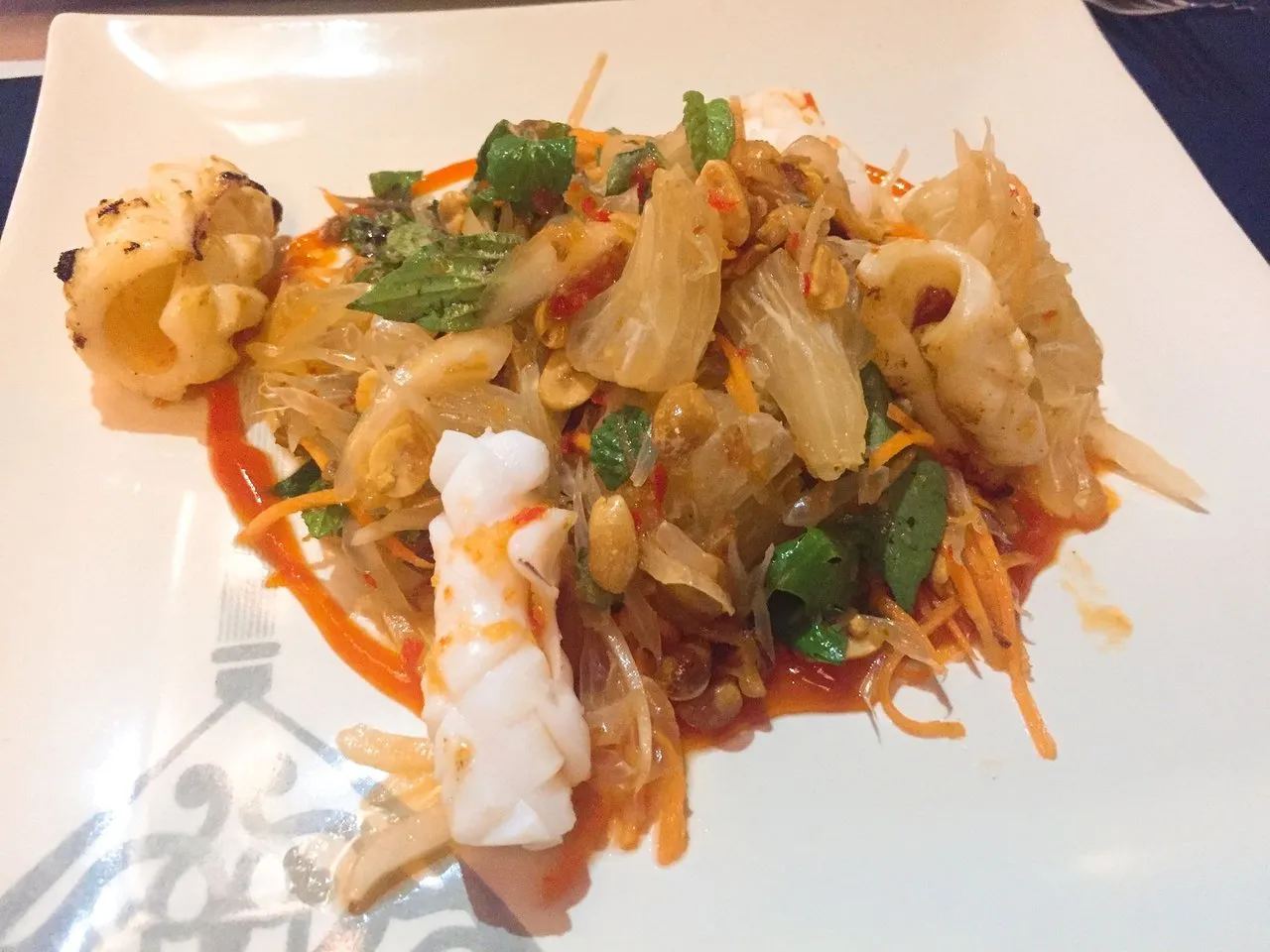 (Duo of Calamari : pomelo and calamori salad grilled calamori, plcal hebs 139,000vnd -> 7000원정도)