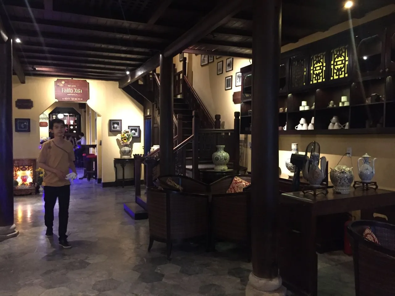 쓰윽 한번 보고 동생이 이 핫한 시간을 좀 피해서 저녁먼저 먹자고 해서 하나 둘씩 가보고 싶은 식당을 가봤는데 역시나 다들 줄이줄이~~ 미리 봐뒀던 유명한 음식점 들을 뒤로하고 등불축제를 보면서 저녁을 즐길수 있는곳을 찾기위해 안쪽으로 걷고 또 걸었습니다~~ 드뎌 안 쪽에 찾은 레스토랑 " Little Faifo " 2층에 자리가 있는지 물어보기 자리가 있다고~~ 오호~~ 안내를 받아 올라가보니 오래된 중국식 레스토랑 같았습니다. 분위기도 인테리어도 작고 아기자기한 호이안에서 보는것과 달리 고급스러운 느낌이었습니다.