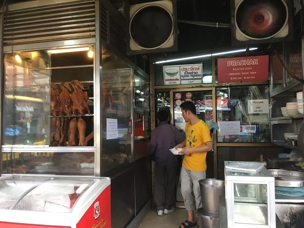 란 쁘라짝 ร้านประจักษ์ Prachak Roast Duck 주인장의 조상은 100년전에 가게를 차리고 운영을 하여 현재까지 맛집으로 이어나올수 있는 바탕을 만들었습니다. 후손들은 조상이 만들어 낸 맛을 바꾸지 않고 지금까지 지켜 오고 있다고 합니다. 얼마전에 Prince Theatre Heritage Stay지난 포스팅 보기 : @himapan/tt20190130t001334896z소개한 지역에서 아주 가까운 곳에 위치하여 있습니다. Pracha Roast Duck에서 가장 인기 있는 메뉴는 오리국수입니다.