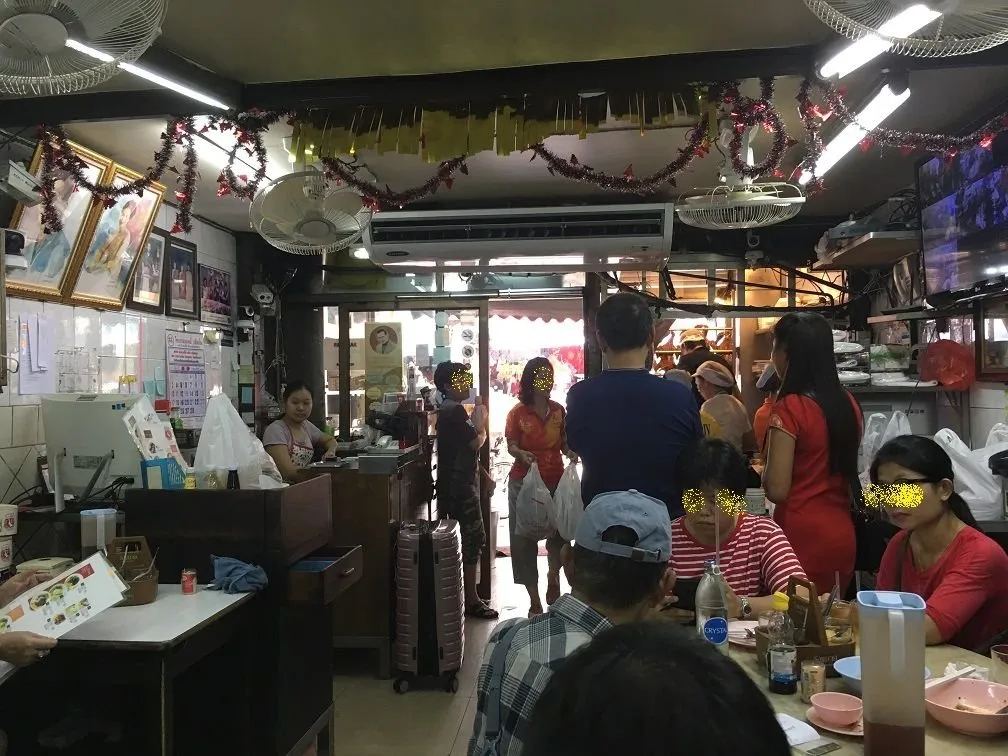 - 가게 안으로는 앉을 자리가 없이 붐빕니다. 거의 동석을 해야 먹을 수 있습니다. 사진에서 왼쪽의 계산대에 앉아 있는 여인이 줜장의 따님입니다. 다음으로 이 가게를 이어갈 상속녀 입니다. 정면의 여인은 젓가락을 들고 있습니다. 90도 각도로 똑바로 들고 있습니다.