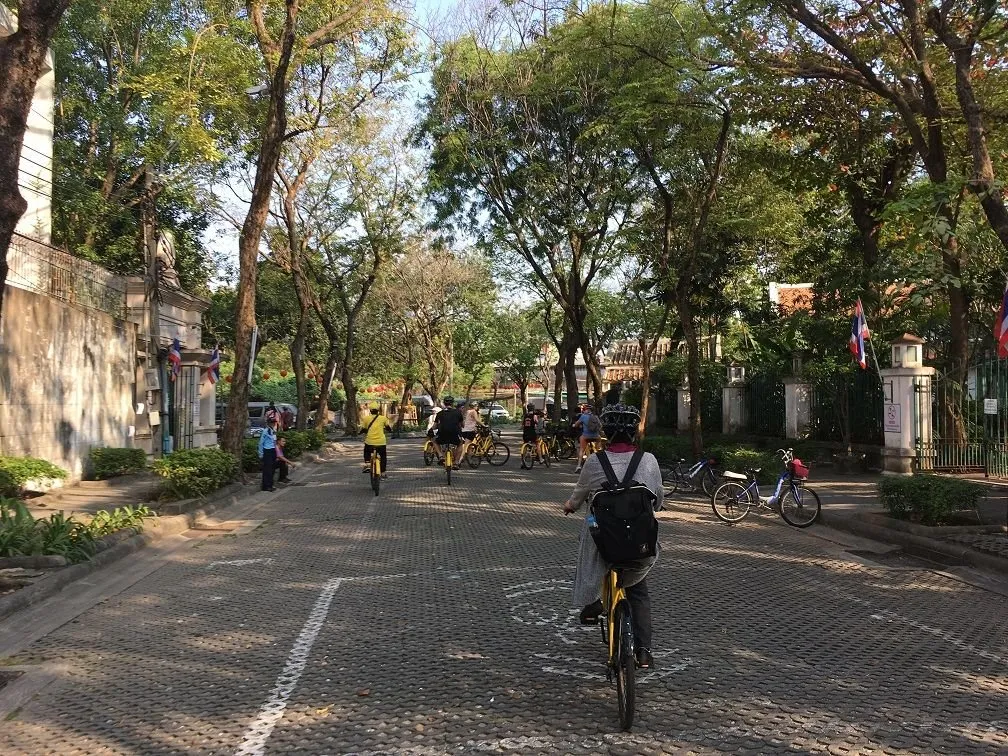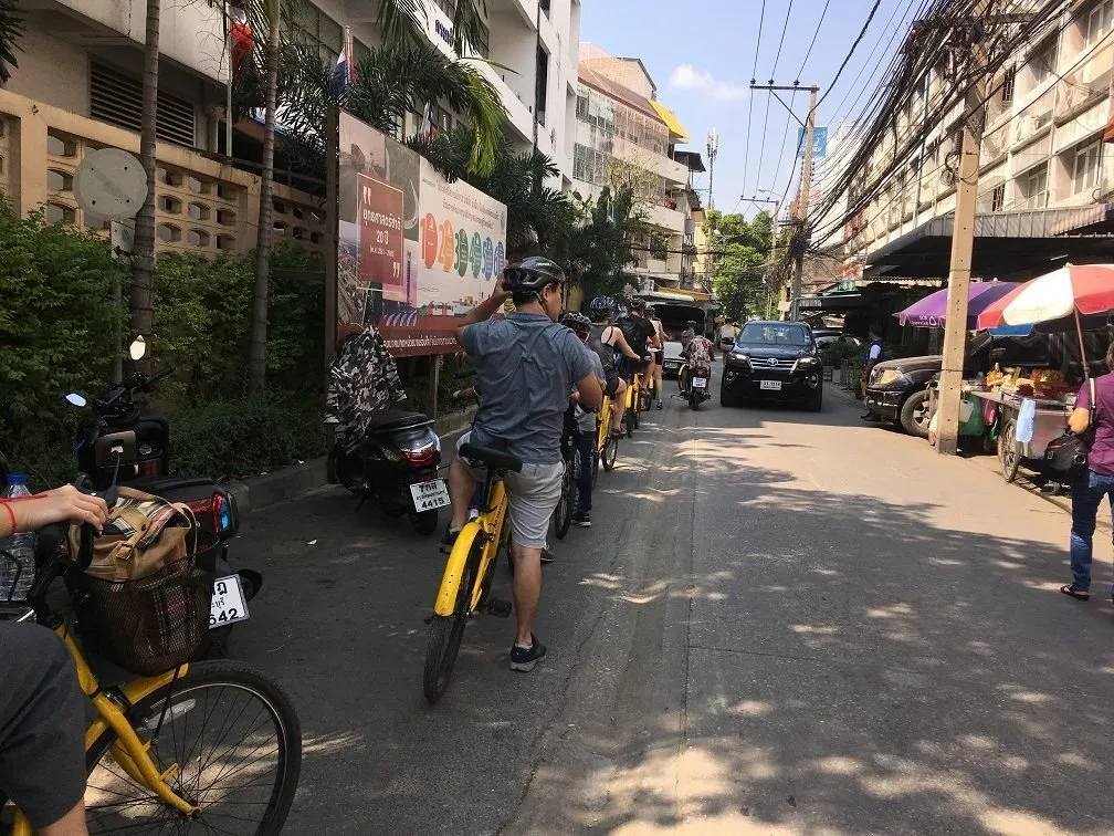 히마판이 태국에 오래 살았고 스팀잇의 멤버들에게 도움이 될 만한 내용이 없을까? 하고 다니면서 "딱" 느낌표가 올라왔습니다. 좋은 자전거 투어 회사를 하나 알려주면 좋겠다는 생각이 듭니다. 방콕의 자전거 투어를 하는 회사가 나쁘다는 것은 아니고 터무니 없이 비싼 자전거 투어를 하는 방문객들을 종종 보아왔습니다. 어느 회사가 안전하게 안내를 하는지가 가장 중요하겠지요. 평소에 자전거를 타고 돌면서 자전거 투어를 하는 사람들을 종종 목격하는데 그중에 가장 문에 뜨이고 확실하게 한다고 생각이 되는 회사를 찿았습니다. 앞뒤로 선 가이드들의 행동과 안전을 지키는 부분을 눈여겨 보고 "한 번 찿아가보아야 겠다!" 고 생각 해두었습니다.