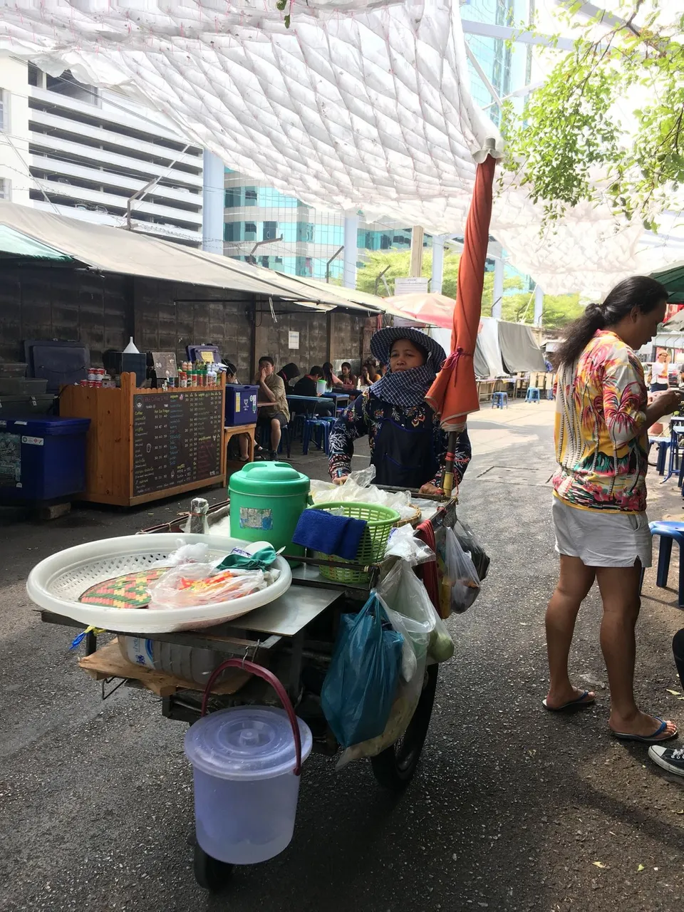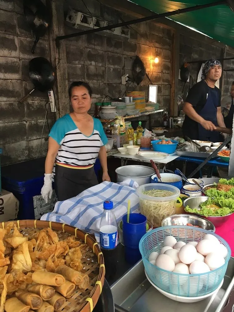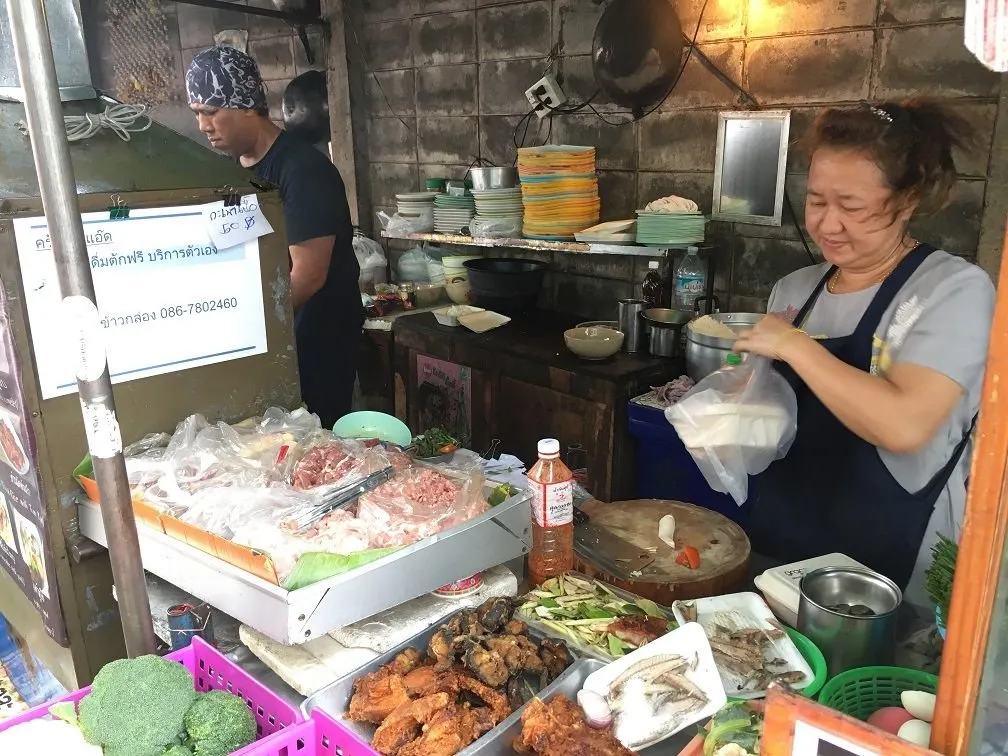그렇게 한 접시의 밥을 먹고 40밧을 지불합니다. 이 가격이 바로 태국의 경제에 맞는 가격입니다. 고급음식점에서 먹는 비싼 음식과 길거리 음식은 맛에서는 큰 차이가 나지 않습니다. 그러나 길거리 음식에는 정이 있습니다.