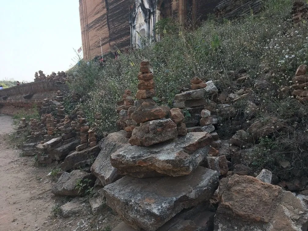 - 대탑의 주변에는 떨어져 나온 벽돌로 작은 탑을 만들어 놓았습니다. 방문자들이 소원을 빌면서 쌓았겠지요.