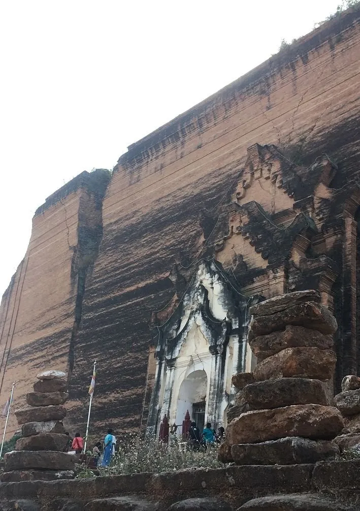 1790년대, 미얀마에 영국군의 침략 구실이 된 밍군대탑은 당시의 왕이 자신의 치적을 견고하게 하기 위하여 노예와 전쟁 포로를 동원하여 강제 노역으로 지어지기 시작하였다고 합니다. 대규모 토목공사에 공원된 노역자들은 그 고통을 이기지 못하고 탈출을 하여 인도로 탈출을 합니다. . 그들을 쫒는 당시 보더파야 왕의 군대는 인도의 국경을 넘었고 당시 인도를 점령하고 있던 영국에 침략의 빌미를 제공하여 미얀마의 슬픈 역사가 시작되는 아이러니를 간직한 대탑입니다.