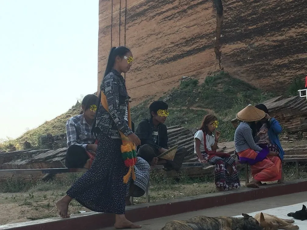 - 부처님이 모셔져 있는 대탑밑의 사원 입구에는 동네 아이들과 어른들의 놀이터였습니다. 그리고 개들의 휴식처입니다. 여기에서 전탑에 올라가지 않고 전탑 사원에도 들어가보지 못합니다. 사가잉 다리를 도보로 건너며 모든 힘이 소진 되어있었습니다.