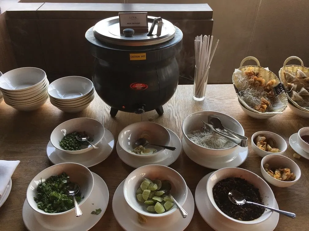 - 호텔에서 제공된 모힝가 입니다. 여러가지 얹어 먹을 수 있는 것들과 같이요. 일단은 모두를 그릇에 담고 열탕기 안에 있는 육수를 마지막에 담았습니다.