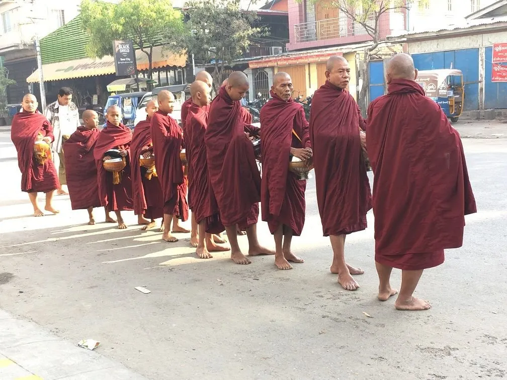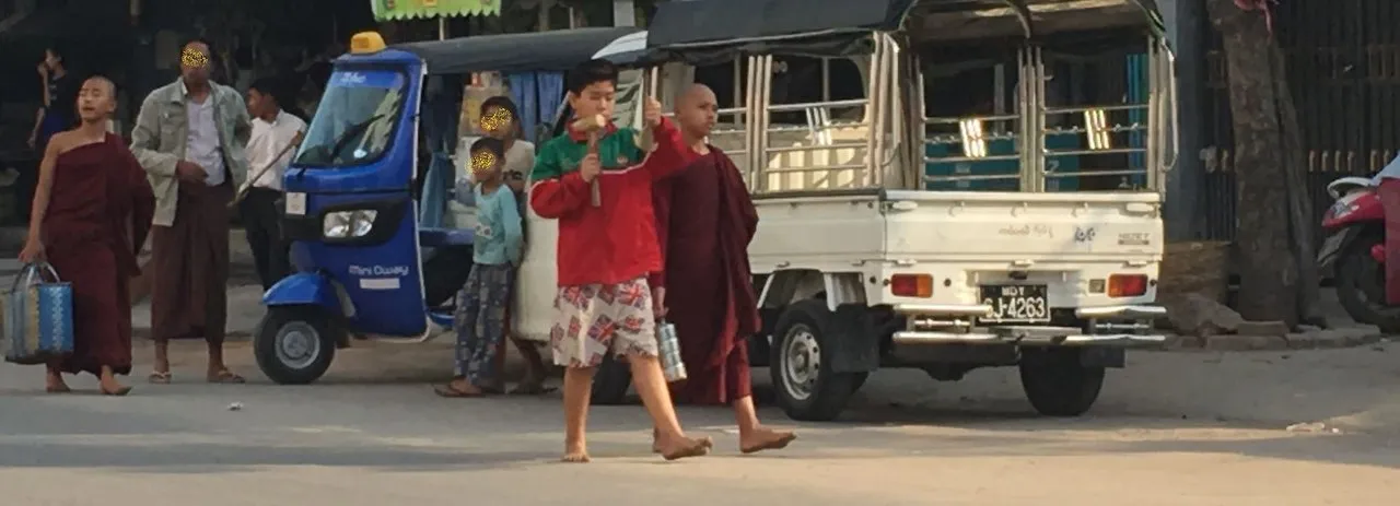 - 시장 근처에는 스님들의 아침 탁발 행렬을 볼수 있었습니다. 만달레이의 수많은 불교사원의 스님들은 탁발에 의하여 공양을 합니다.