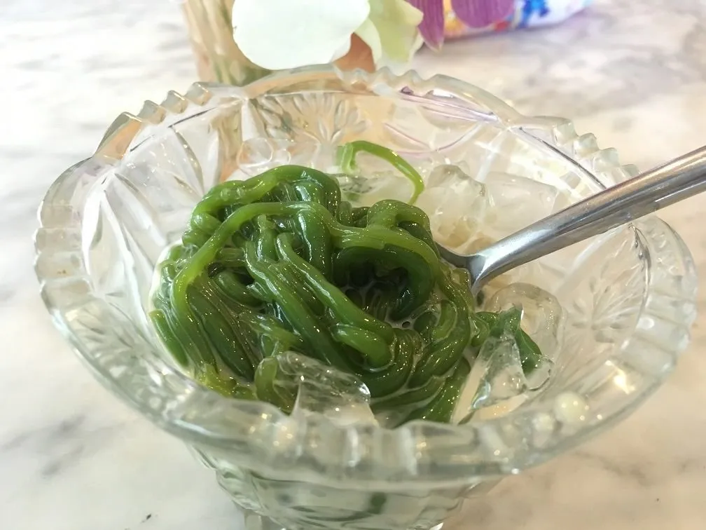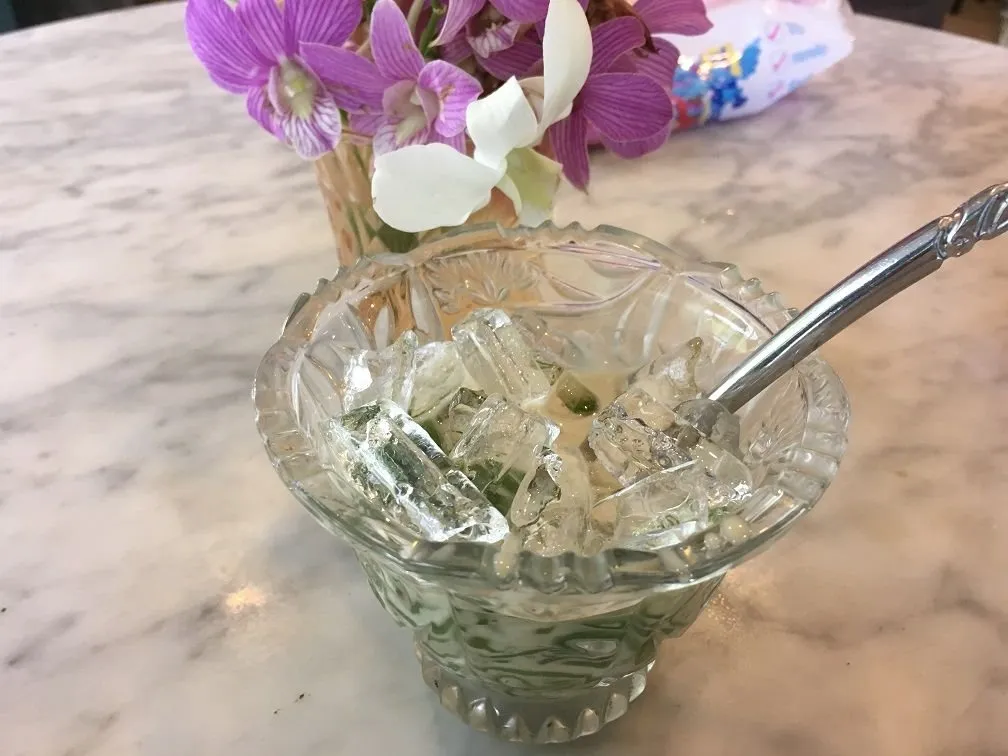 - 안에는 이렇게 밀가루와 녹말로 만들어진 후식입니다. 시원하고 좋습니다.