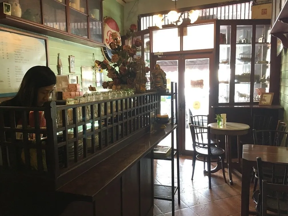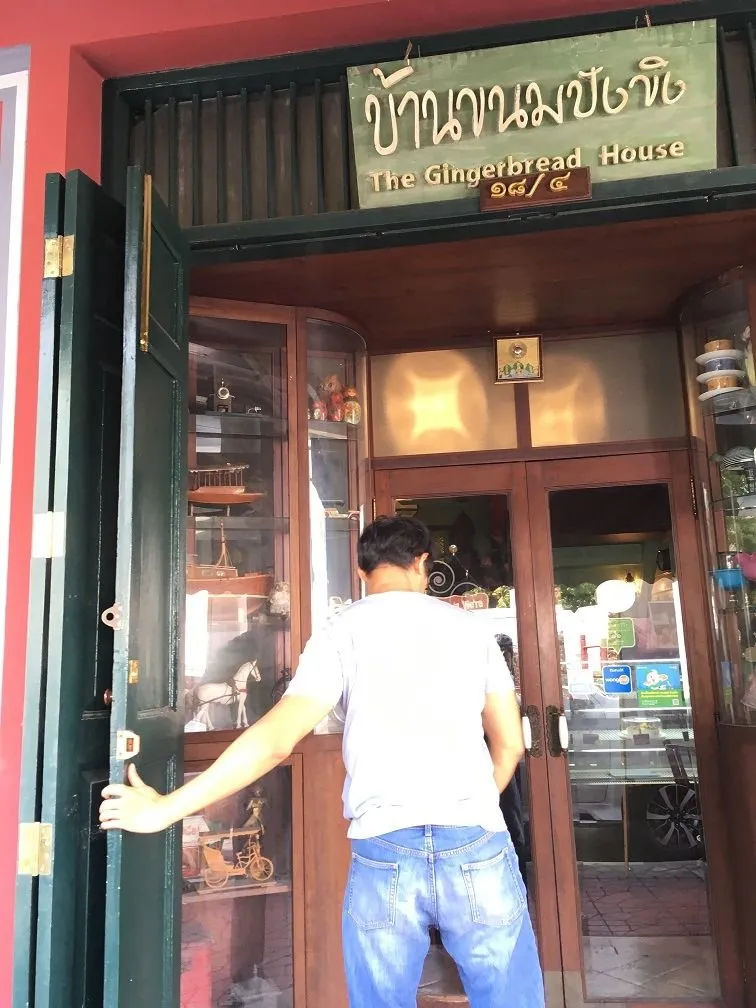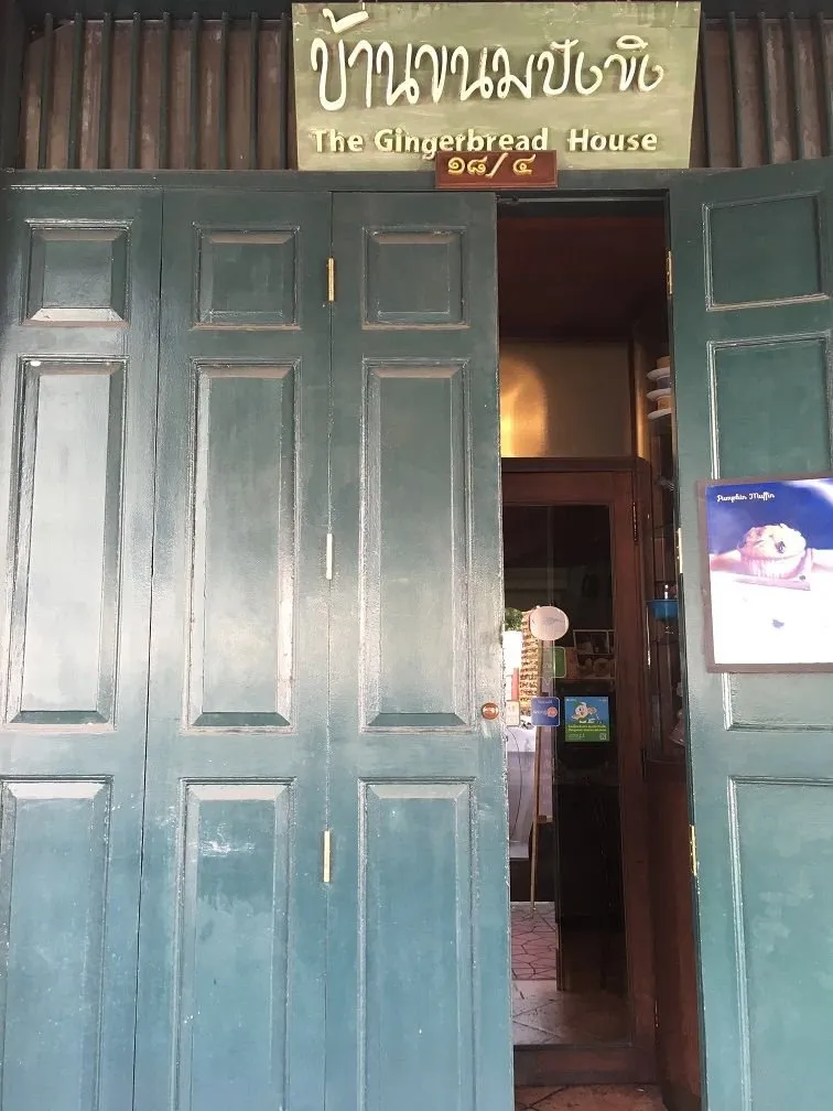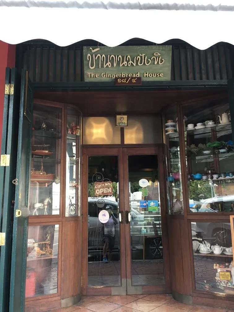 방콕의 올드타운 라타나코신 지역에서 부부는 커피와 케익을 팔고 있습니다. 아마도 그들은 자신이 소유한 가게의 이름이 세계적으로 사용되고 있는 이름이라는 것을 알았는지 가게이름 앞에 "The"를 붙여서 The Gingerbread House" 라고 지었습니다. 가게는 짜오프라야 강가의 오래된 요새인 Phrasumen포대 진지가 바라다 보이는 길건너편에 위치하여 있습니다. 오래된 구도시 답게 주변의 건물들이 구시가지의 자태를 뽐내고 있습니다.
