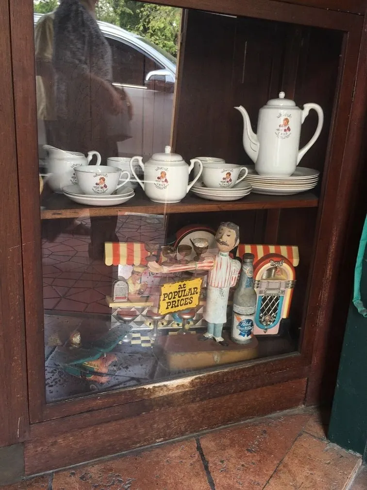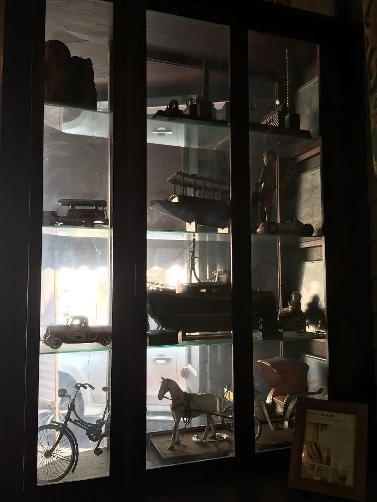 - 가게의 진열장에는 오래된 미니어쳐들이 진열되어있습니다. 누구의 취미인지 모르겠습니다.