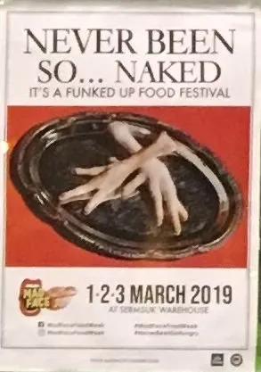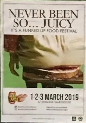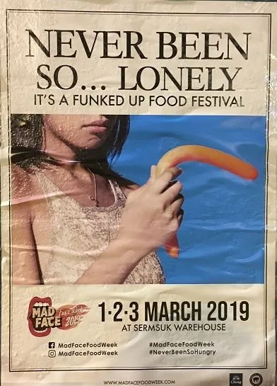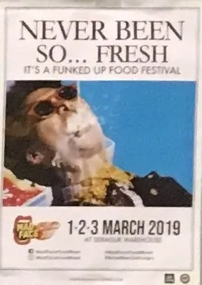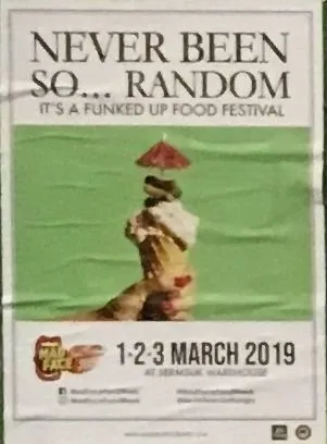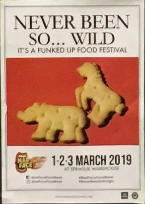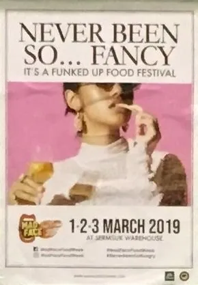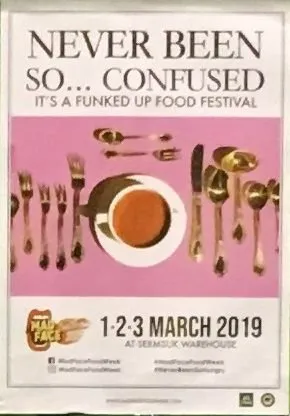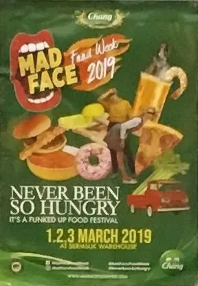 MAD FACE FOOD WEEK 2019의 포스터를 유심히 봅니다. 어지러운듯 하지만 정리가 잘되어있고 울긋불긋한 총천연색은 일단 방문객들을 미치게 만들어서 들여 보넬려는 주최측의 속셈이 숨겨져 있는듯 합니다.