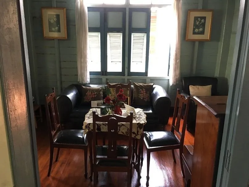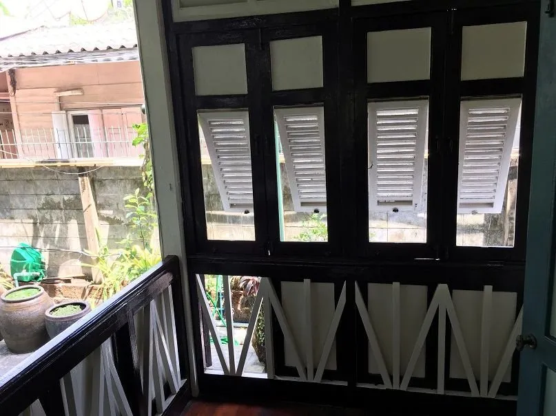 - 가옥의 외부 난간에는 삶의 지혜가 보입니다. 더운 기후와 스콜의 영향을 고려하여 난간을 개폐할 수 있게 만들어 놓았습니다. 난간에 밑에 목재 창문을 만들어 놓았습니다.