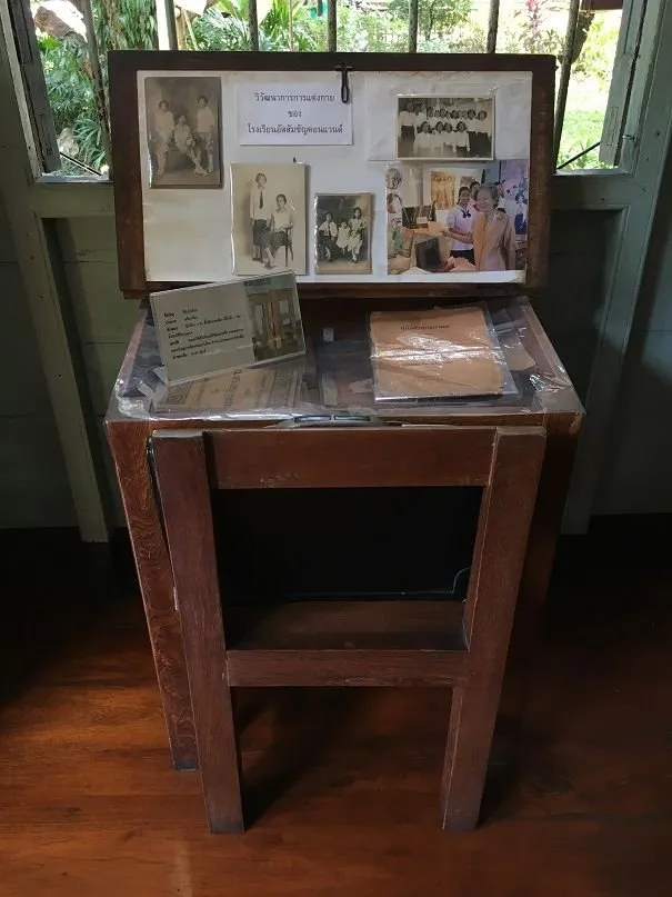 - 그녀가 소녀 시절에 사용한 책상입니다. 소녀의 사진들입니다. 사진의 오른쪽 하단의 할머니가 그 소녀입니다.