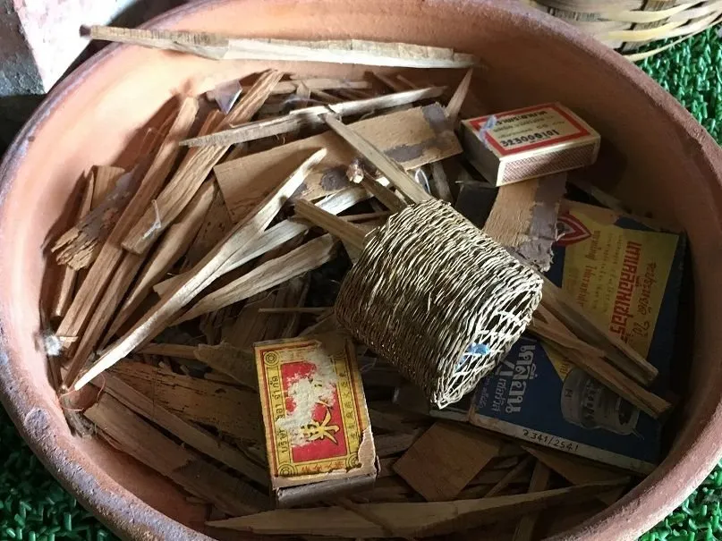 성냥과 가늘게 자른 나무이지요. 불쏘시게로 사용되는 저나무는 성냥불만 가까이 하여도 불이 붙습니다. 그래서 불쏘시게로 사용을 합니다.