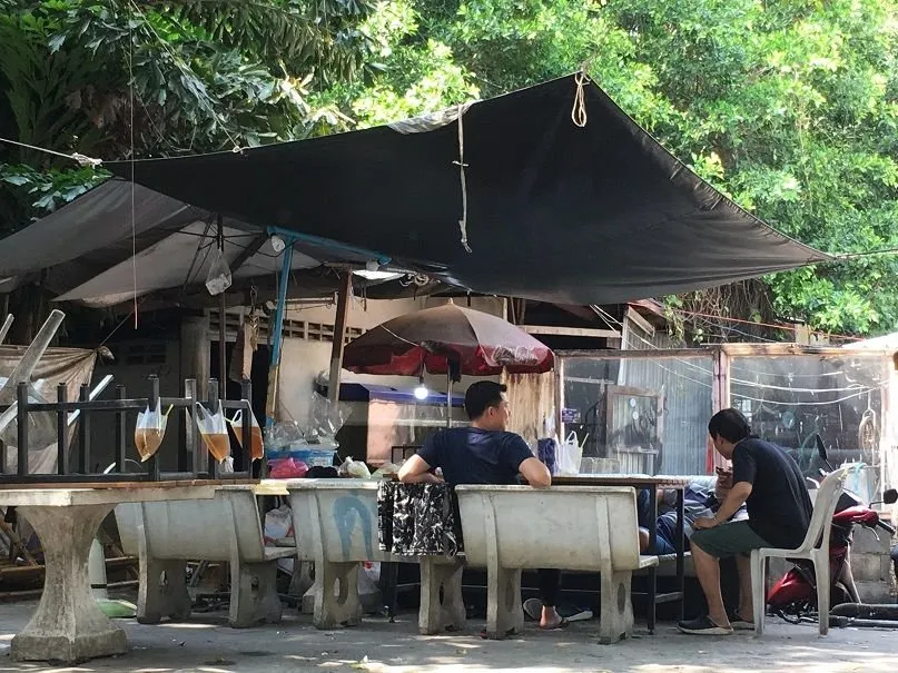 이곳은 동내의 젊은이 들이 매일 모이는 자리 인가 봅니다. 딸랏노이를 갈 때마다 지나치는 장소인데 항상 젊은 친구들이 자리를 하고 있습니다. 함부로 가까이 가면 인상을 받을 것 같아서 접근을 못합니다. 의자에 매달려 있는 비닐 봉투는 얼음에 시원하게 담겼던 음료들이 얼음은 모두 녹고 뚱뚱하게 매달려 있습니다. 음료를 봉투에 담아 빨대를 사용하는 음료는 판매 하지 못하게 하여야 합니다. 아마도 콜라가 아니었을까? 합니다.