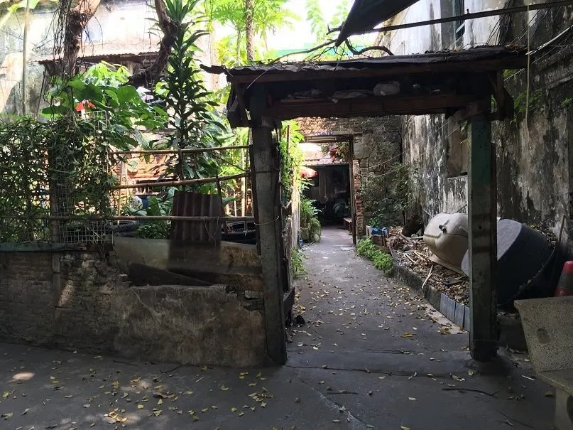 딸랏 노이를 찿아가는 쉬운 방법은 지상철 BTS 딱씬역에서 하차하여 역의 밑에 있는 선착장에서 배를 이용하여 리버시티로 이동하면 리버시티에서 바로 딸랏 노이로 도보로 이동이 가능합니다. 리버시티에서 나오면서 건물의 끝에서 왼쪽으로 돌면 딸랏노이로 들어가는 작은 건물이 있습니다. 지난 포스팅에서 소개한 자전거 투어회사 KESSEL BIKE도 요기에 있습니다. 아래 사진이 딸랏 노이로 들어가는 골목입니다. 골목위에 걸려있는 장식은 평상시에는 없습니다.