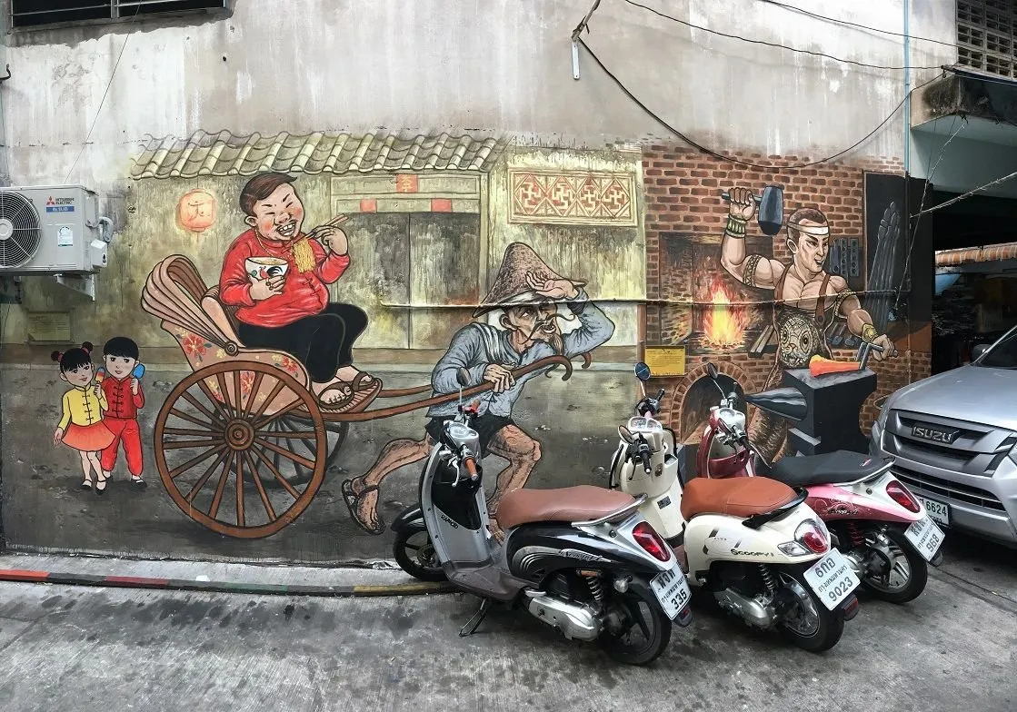 딸랏 노이의 골목은 차이나타운인 야왈랏으로 들어가는 작은 골목 중의 하나입니다. 딸랏 노이는 "작은 시장"이라는 뜻으로 아마도 차이나타운이라는 거대한 시장의 옆에 붙어 있는 또 다른 시장으로 작게 표현하고 싶었나 봅니다.