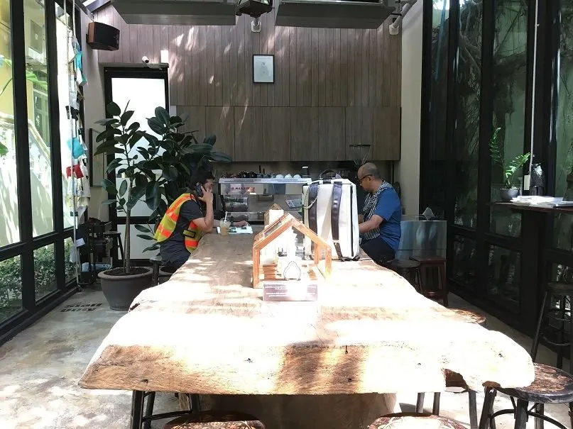 - 이 집엑서 가장 부러운 것은 카페의 가운데 놓인 20센티 두께의 기~~~~ㄴ 통나무 테이블입니다.